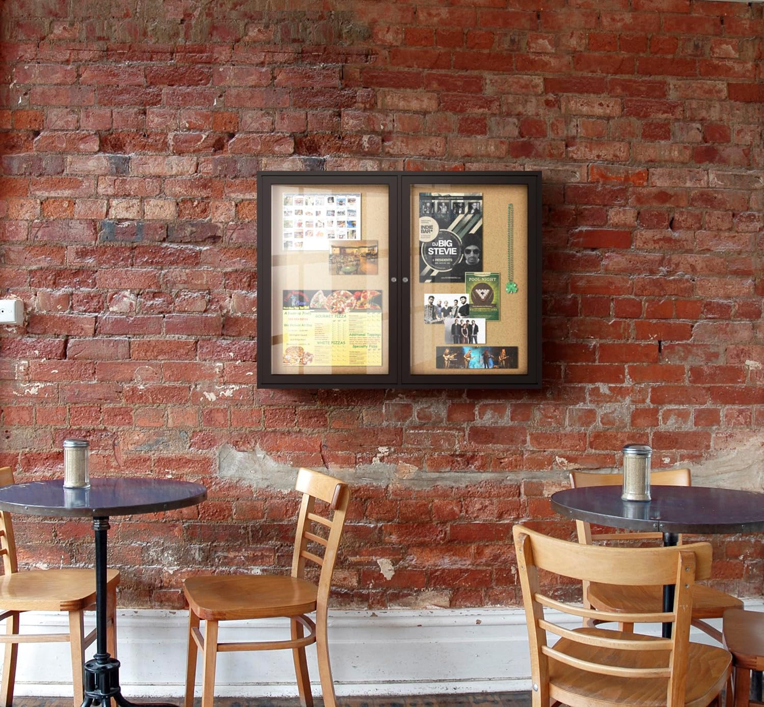 Ghent 36"x60" 2-Door indoor Enclosed Bulletin Board , Shatter Resistant, with Lock, Bronze Aluminum Frame - Natural Cork (PB23660K) Made in the USA