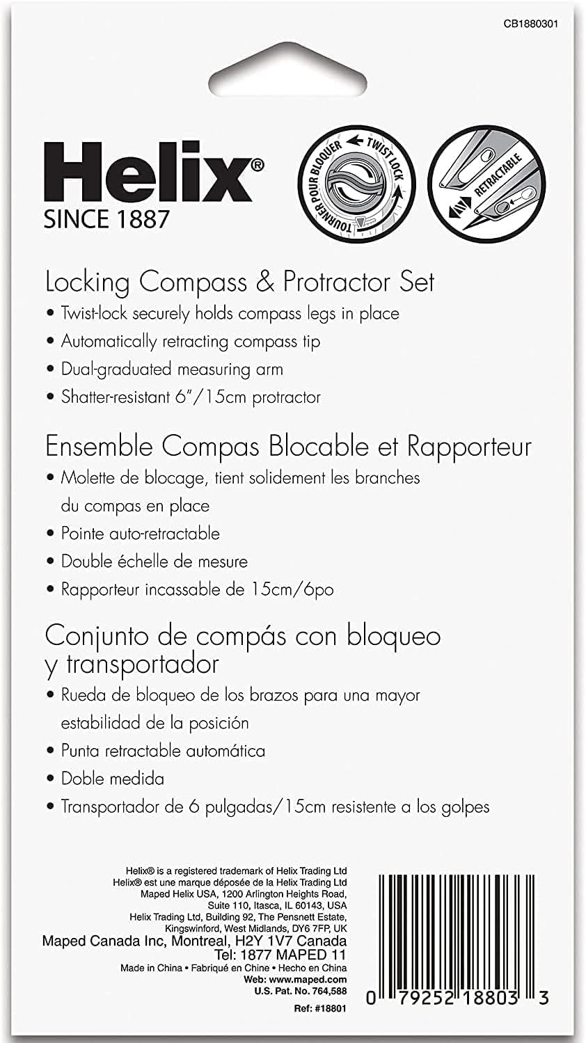 Helix - Plastic Locking Compass and Protractor - 2 Piece Set - Geometry, Drafting & Drawing