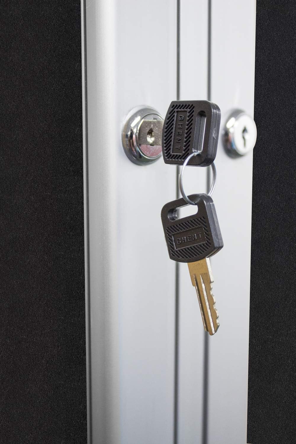 - SHATTER RESISTANT DOORS - Full length door hinges and acrylic panels, flush mount locks, and keys for added security to protect your documents from unauthorized access.