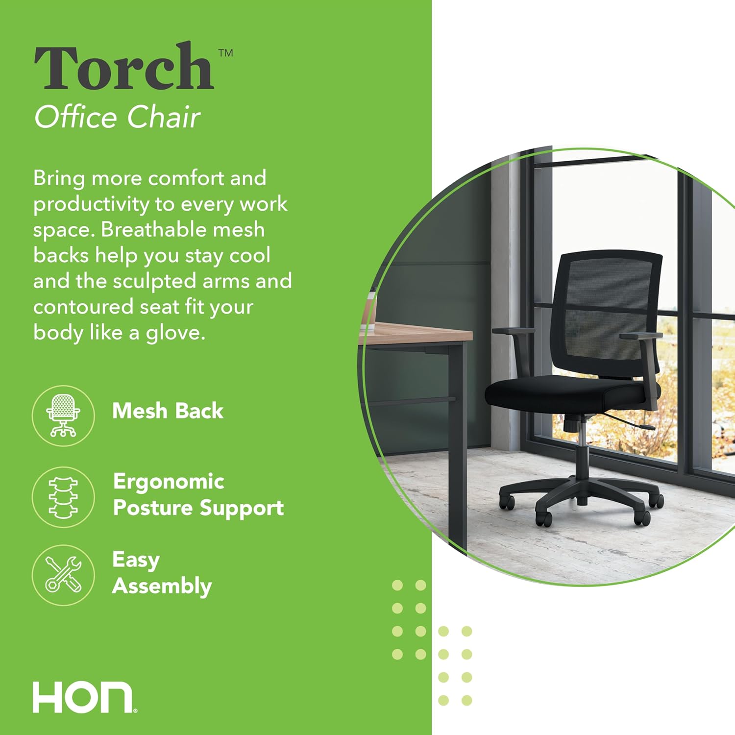 HON Torch Ergonomic Mid-Back Office Chair, Comfortable Fabric Seat Home Office Task Chair, Tilt-Tension Recline Control, 360 Rolling Swivel, Sculpted Fixed Arms