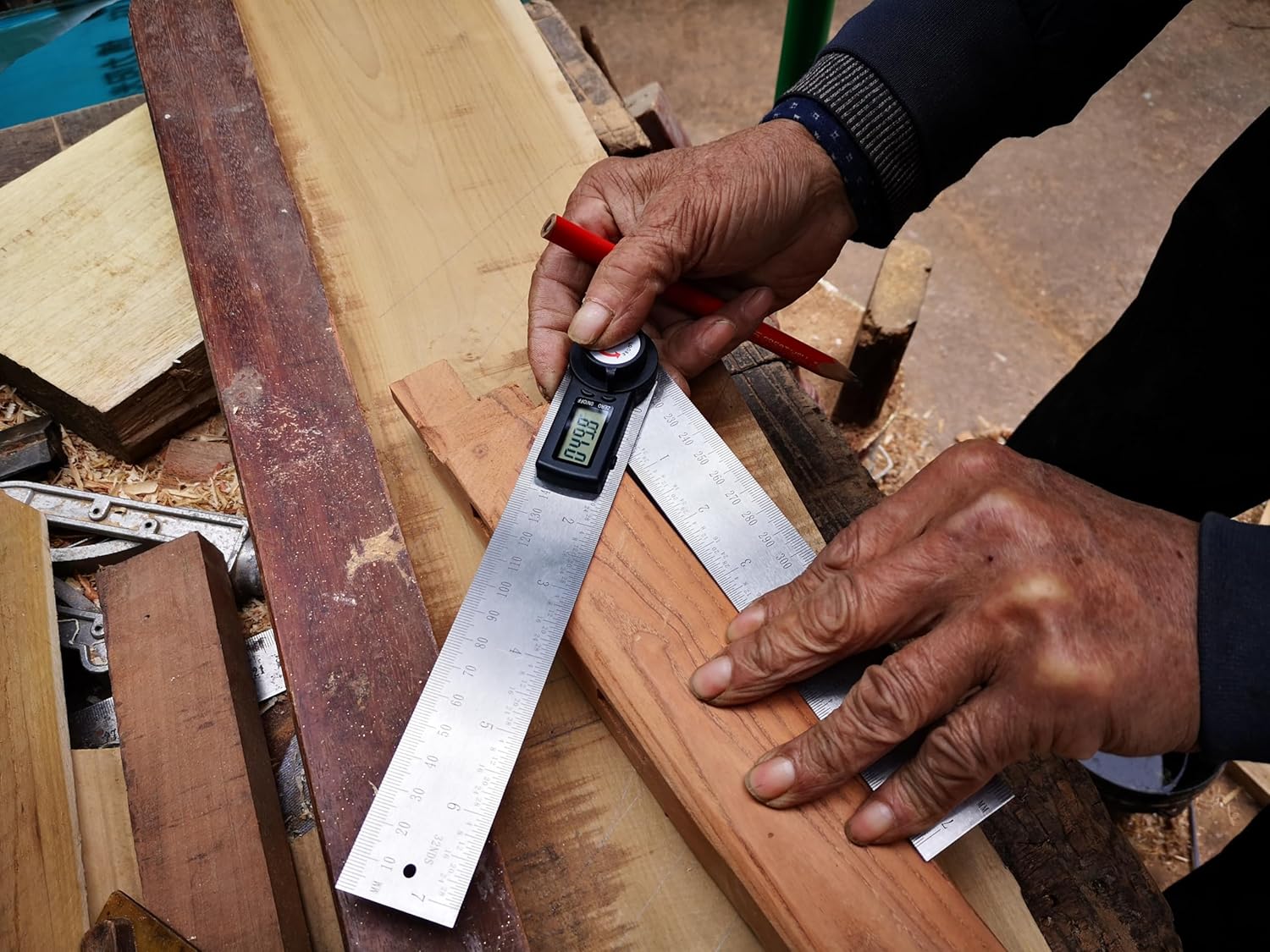 - HIGH ACCURACY -- Accuracy of this protractor is ±0.3 degree. It is a good choice for most projects like woodworking, crown molding and daily use. Folded length: about 7.5 inch/220mm.Total length 400mm.