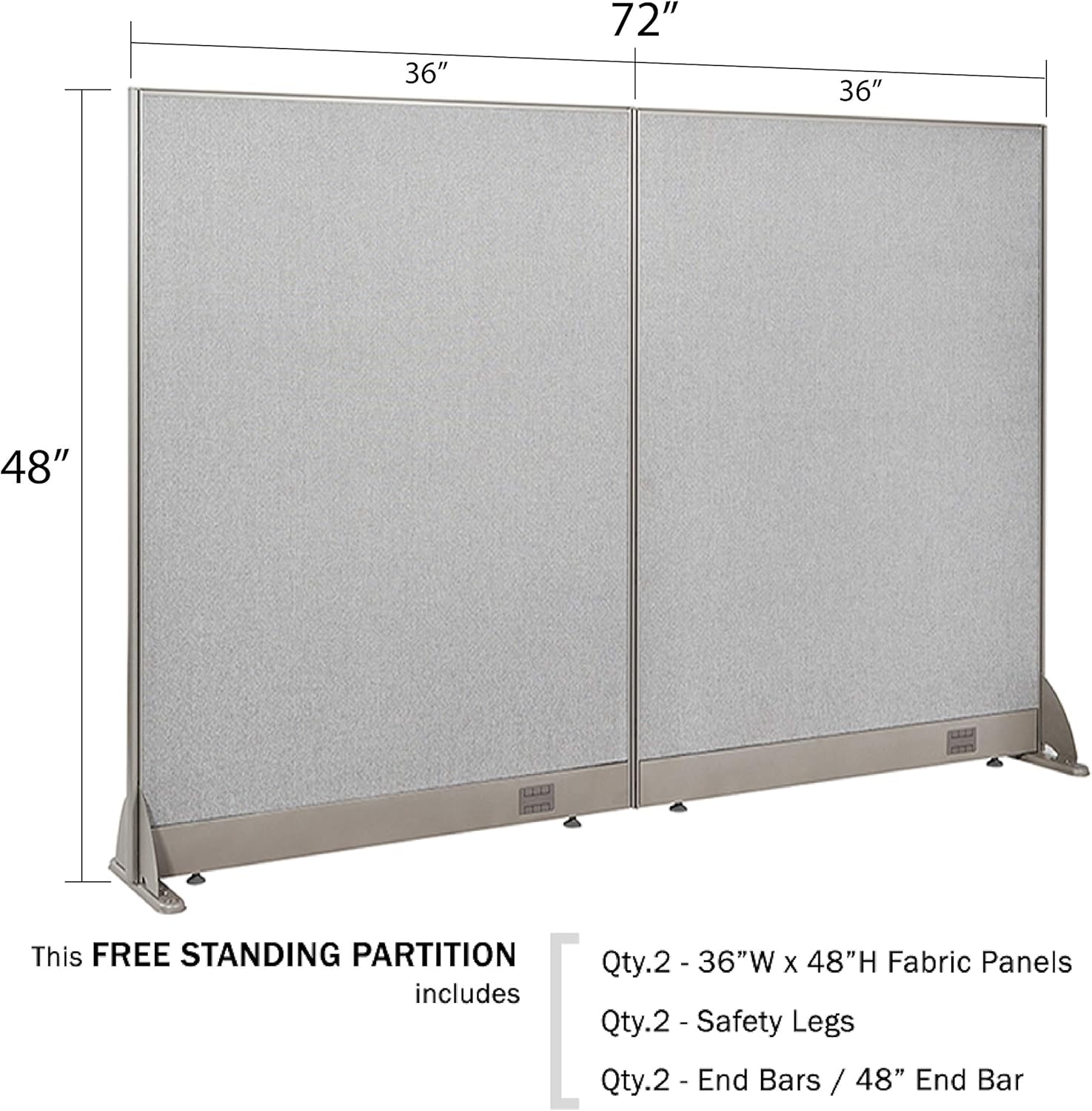 - The package includes Two 36”W x 48”H Panels, 2 End Bars & 2 Safety Legs.