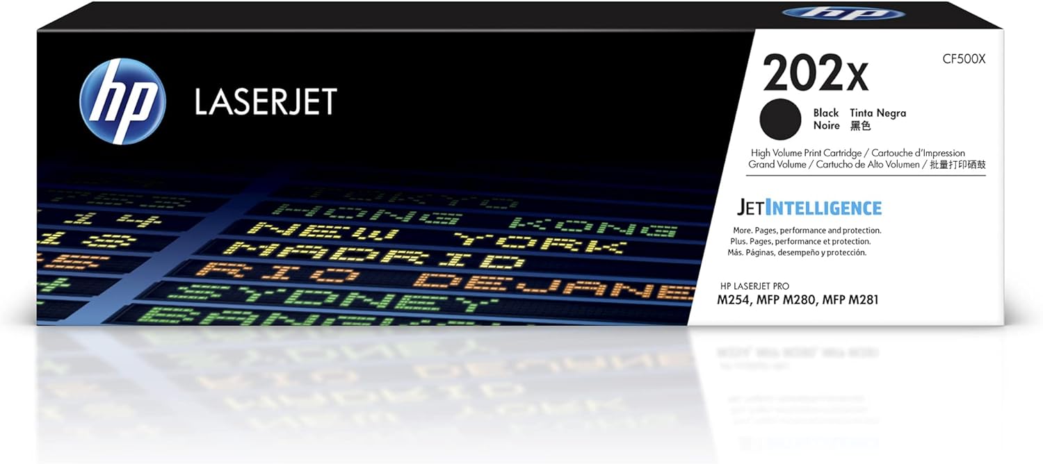 HP 202X Black High-yield Toner Cartridge ,Works with HP Color LaserJet Pro M254, HP Color LaserJet Pro MFP M281 Series CF500X