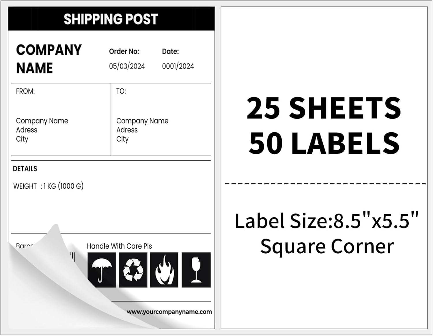 - 【Label Size】Half page labels, 2 labels per sheet, 25 sheet, 8.5×5.5 inches,50 labels.