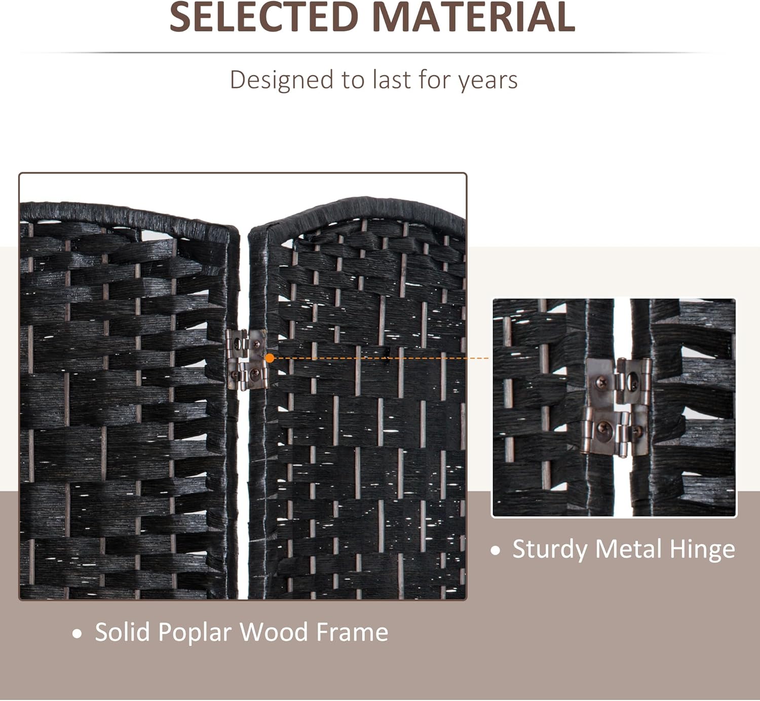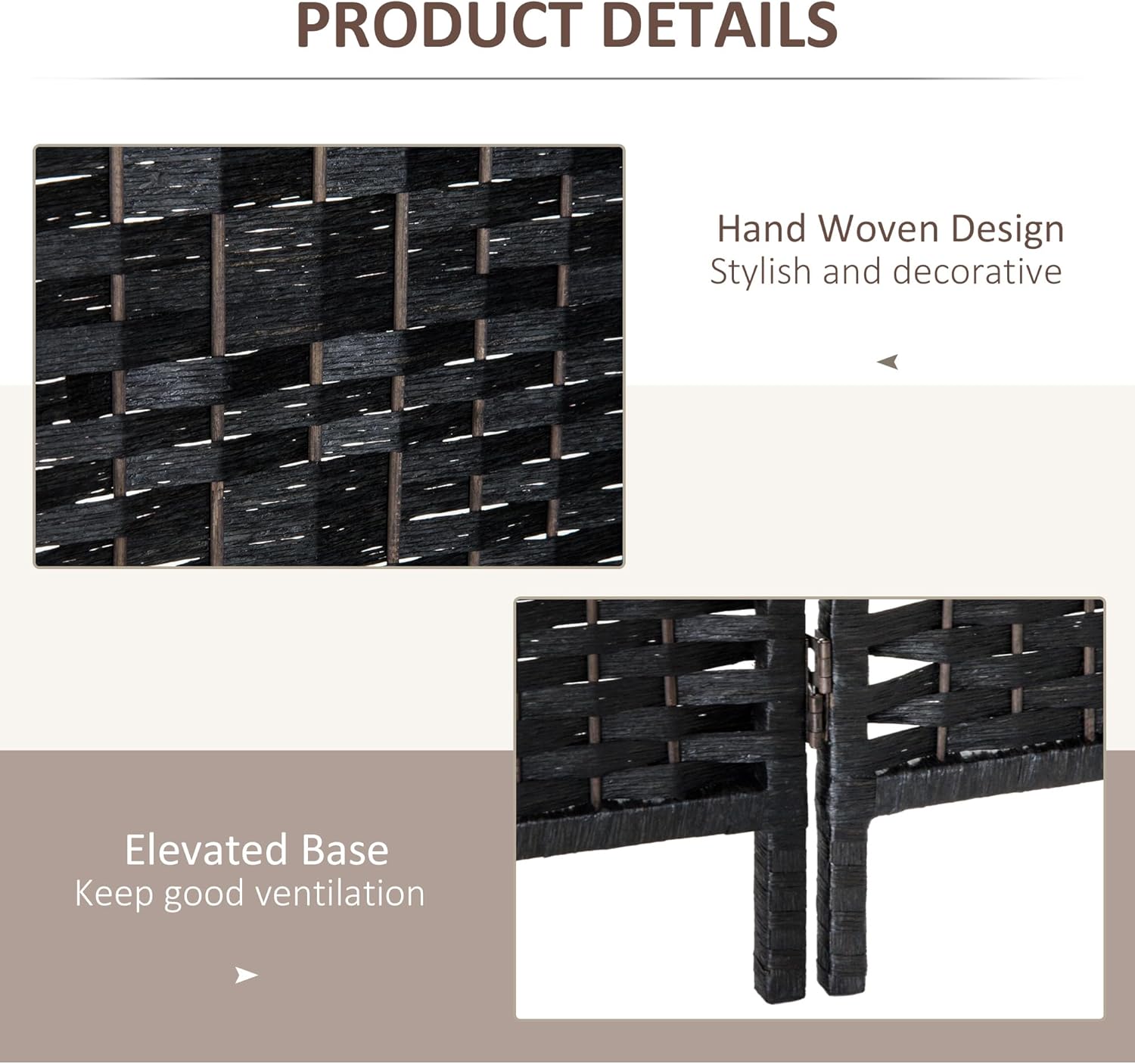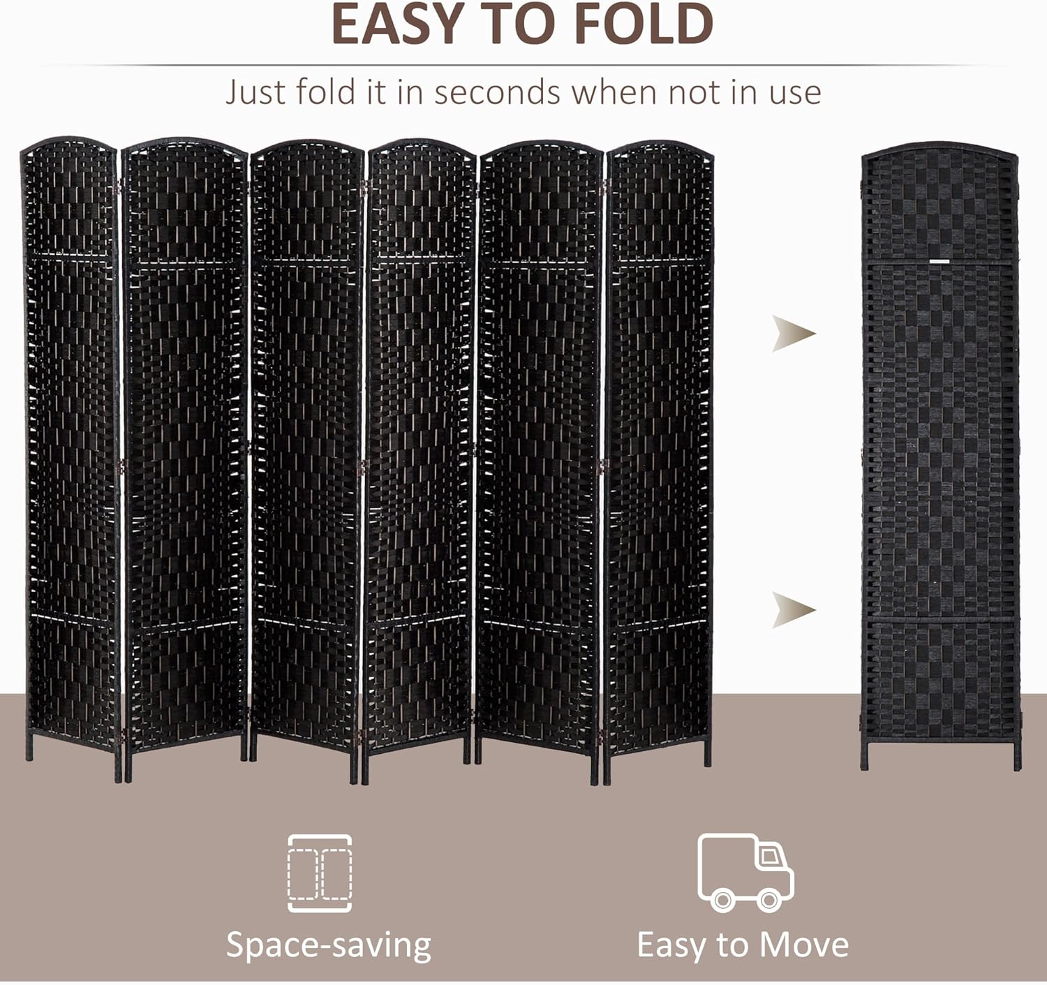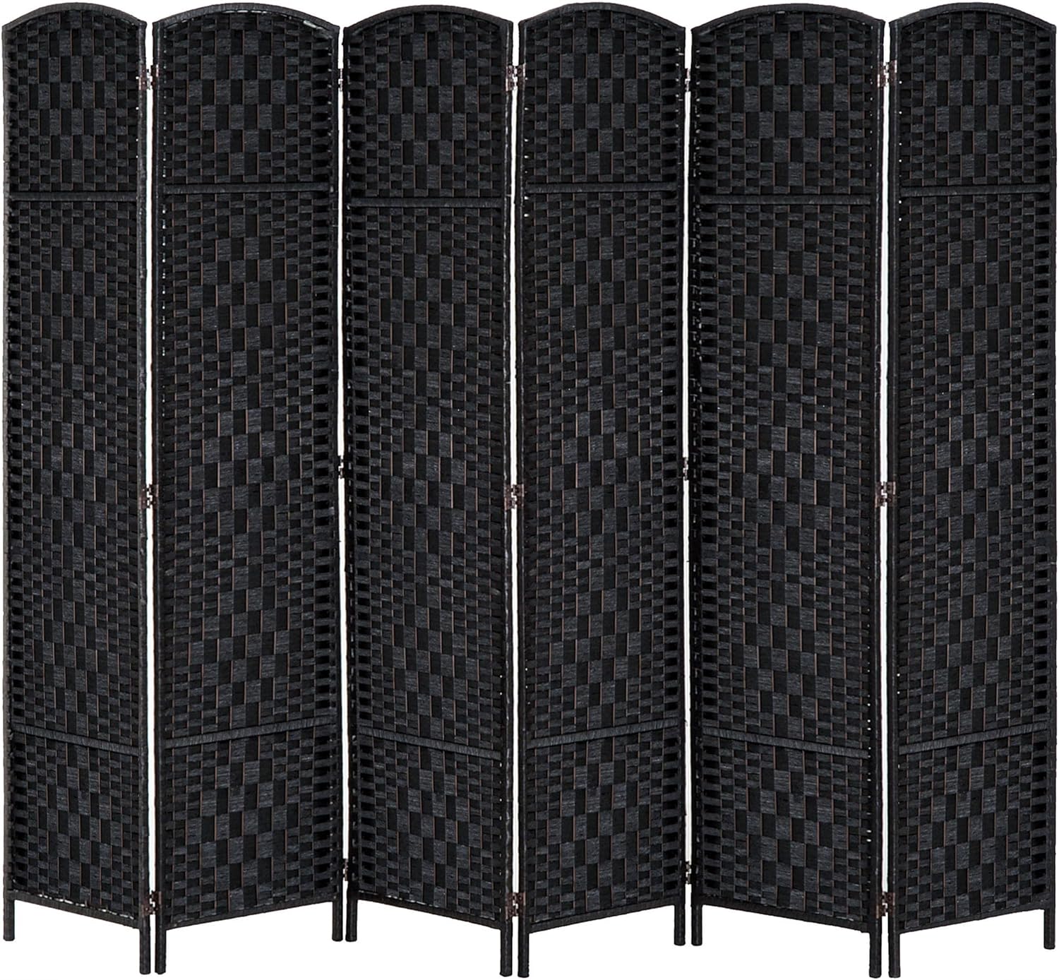 HOMCOM Room Divider, 6 Panel Folding Privacy Screen, 6FT Tall Portable Wicker Weave Partition Wall Divider for Bedroom, Home Office, Black