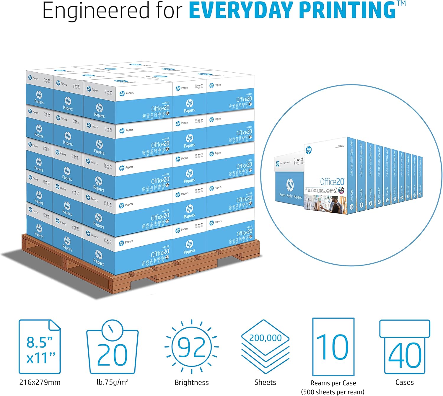 HP Printer Paper | 8.5 x 11 Paper | Office 20 lb | 1 Pallet - 40 Cartons - 200,000 Sheets | 92 Bright | Made in USA - FSC Certified | 112101P
