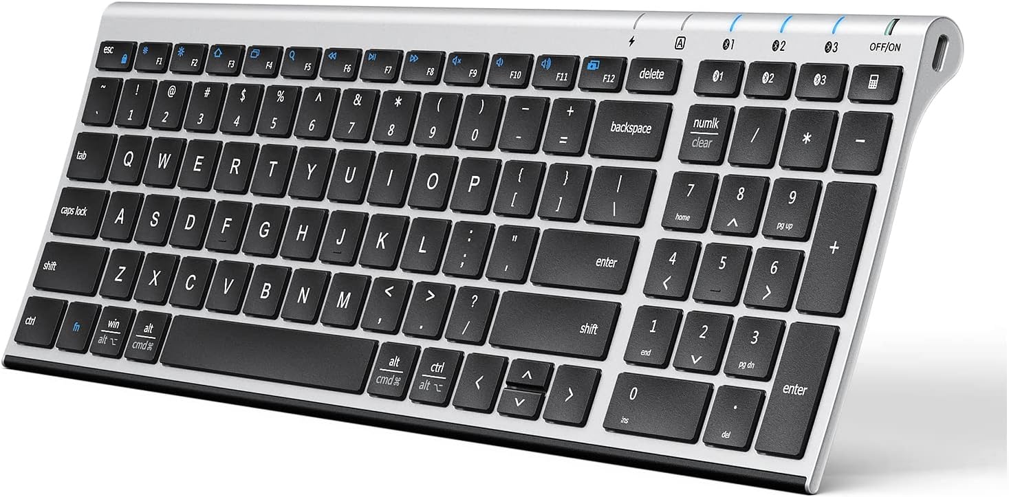 iClever BK10 Bluetooth Keyboard, Universal Bluetooth 5.1 Wireless Keyboard with Number Pad, Ergonomic Design, Multi-Device Compatibility, Stable Connection for Mac, iPad, iPhone, Android, Windows