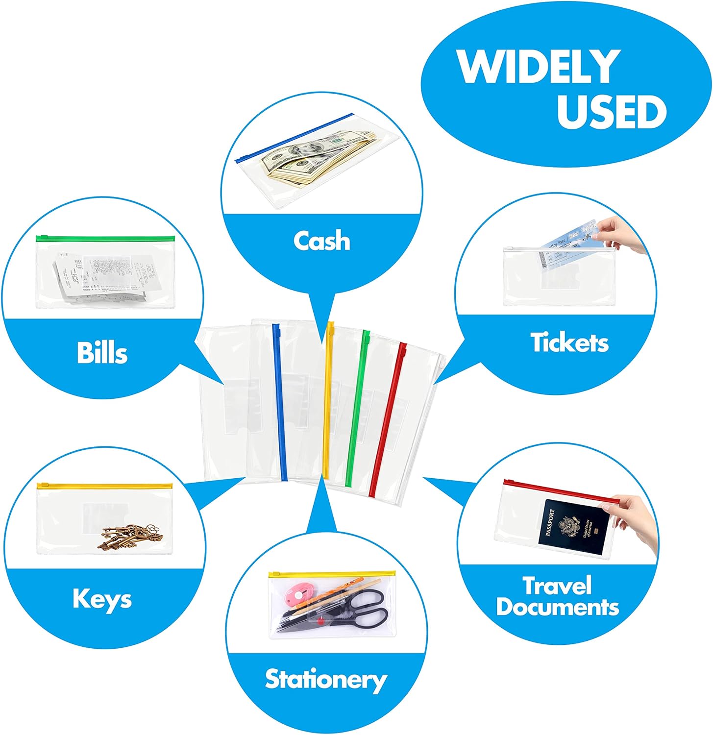 - Features: High-transparency and color-coded for easy organizing. Water proof and durable, the bag material features a certain ductility so it would transform a bit to protect the enclosed objects with edges.