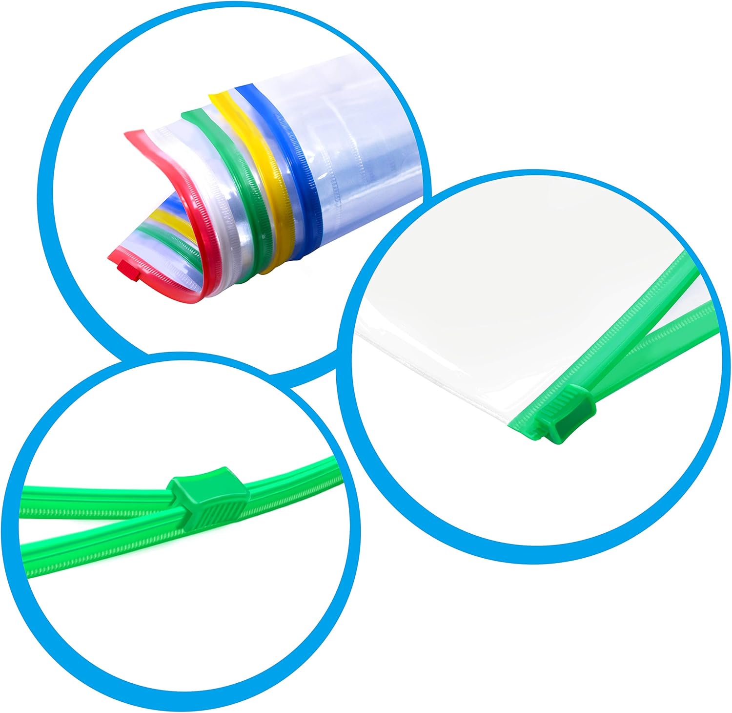 - Classic Design: Clear zipper bag PLUS tag pocket, color-coded seals for easy sorting. Each could hold up to 40 pages or more, perfect for normal course content and project needs.