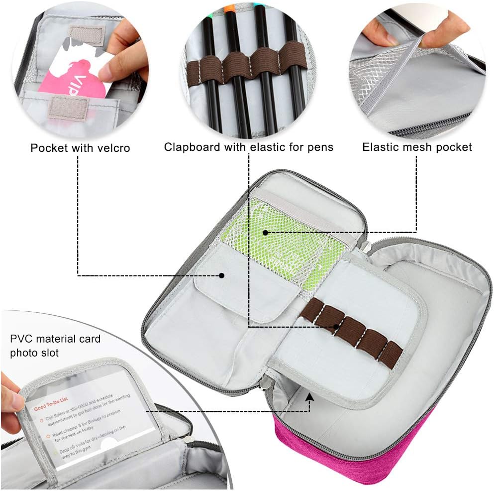 - 【PRAGMATIC CONSTRUCTION】: The inner velcro closed pocket can hold your cards, sticky notes or changes, The mesh pocket can keep your usb cable or ear buds well in place, The center hard flap with pen loops can hold 6 pieces frequently used pens for a quick access, The back of the flap with a transparent card/photo slot.