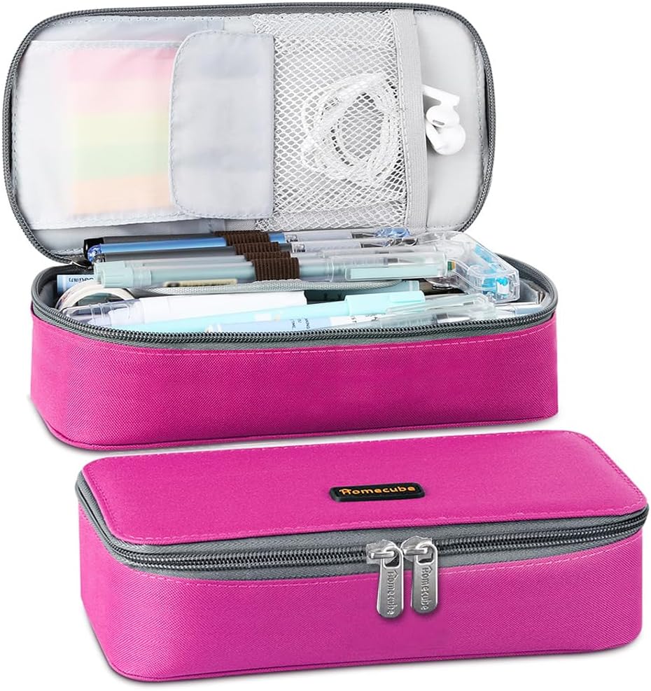 Homecube Large Capacity Pencil Case Oxford Cloth Bag Storage Pouch Marker Pen Pencil Cute Stationery Organizer Bag Holder with Zipper for Middle High School & Office Boy Girl Teen - Rose Red