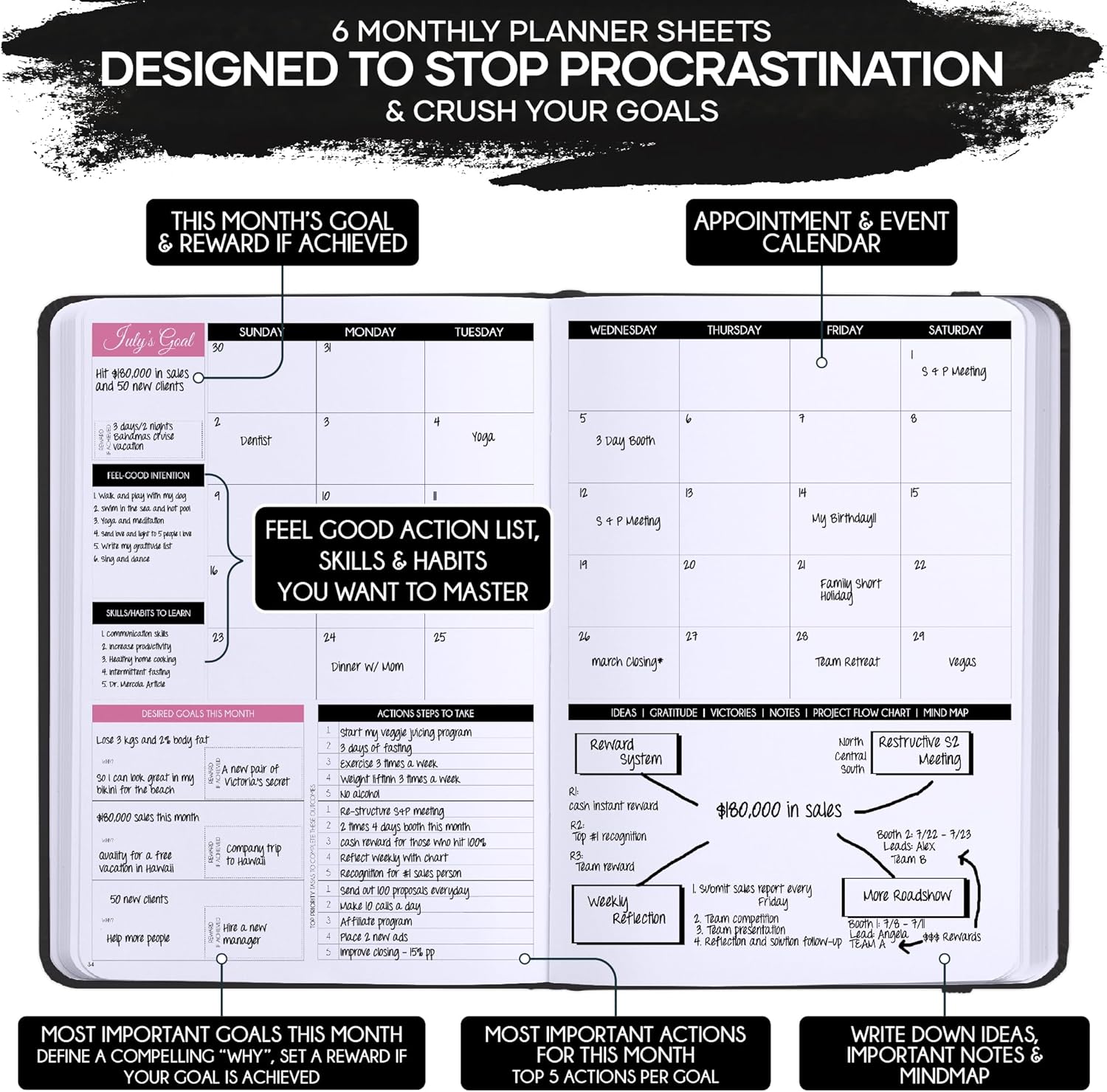 - MANIFESTATION JOURNAL - This deluxe daily planner and gratitude journal for women comes in A5 size (5.8 x 8.3 inches). The life planner comprises 264 pages of thick 100 gsm paper, including 90 daily planning sheets, guiding you on how to become the best possible version of yourself on a mental, physical, and interpersonal level. It's a unique diary based on leading scientific studies proven to increase productivity and happiness. The journal features an out-foldable vision board to help you stay focused, morning and evening power questions, mind maps, reflection pages, habit trackers, a back pocket, and much more than any other planner on the market!