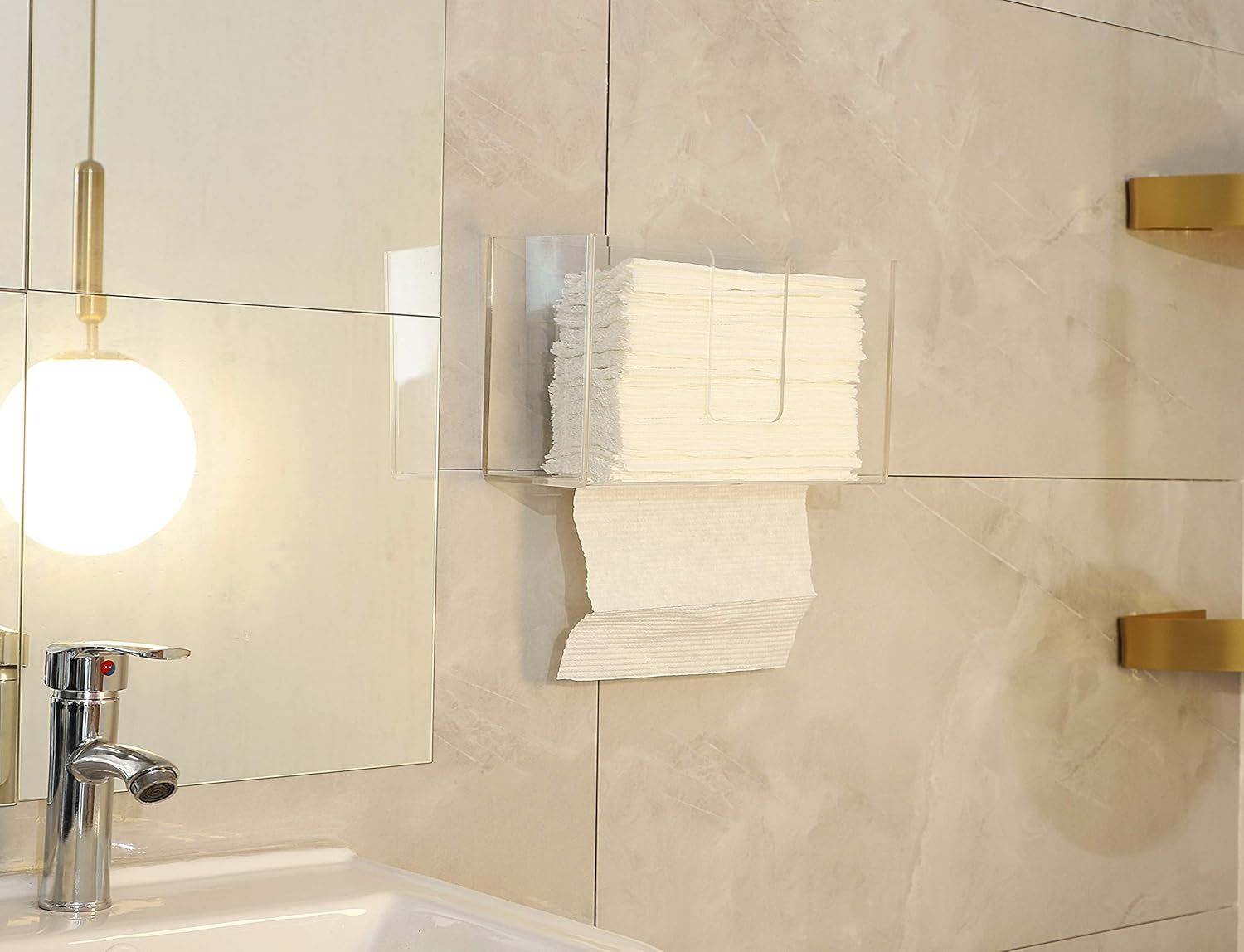 IEEK Paper Towel Dispenser Wall Mount Acrylic Paper Towel Holder for Bathroom Office and Kitchen,Hand Towel Dispenser Fits Multi-Fold Paper Towel,C-Fold, Zfold,Tri fold Paper Towels,Clear