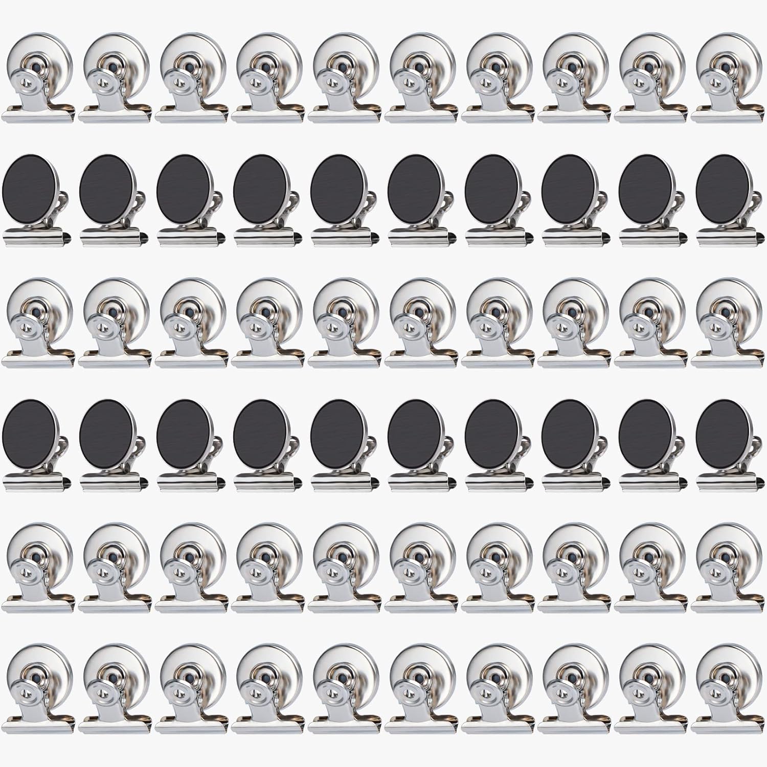 Grtard 60pack Magnetic Clips Heavy Duty, Silver Magnet Clips for Fridge, Refrigerator Magnets, Strong Magnetic Clip,Scratch Free Magnets with Clip for Refrigerator, Whiteboard, Classroom, Locker