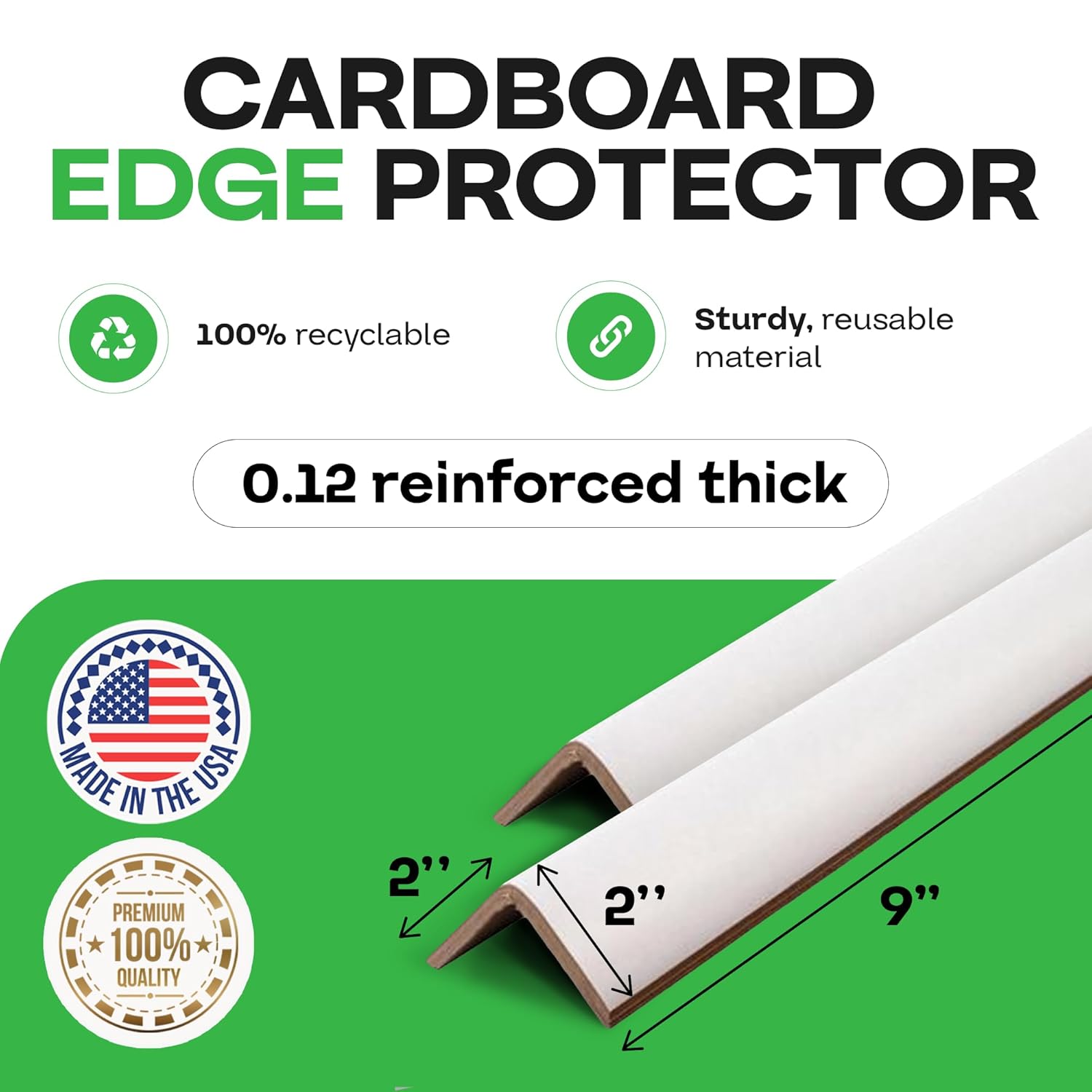 - GENERAL CHARACTERISTICS: V-Board Reinforced Cardboard Edge Protector 2" x 2" x 9" eliminates packaging shifting and minimizes damage during transportation or storage. Made from 100% recyclable cardboard, Cardboard corners for packing, 0.12" thick are white color and available in a wide range of lengths (9", 12", 18", 24", 36", 48"). If you need a different length than available, use the AC-110 Portable Edge Protector Cutter and cut the edge protector to your desired size. This edge protector cutter and cardboard edge protectors in pre-cut lengths are available in our IDL Packaging Store