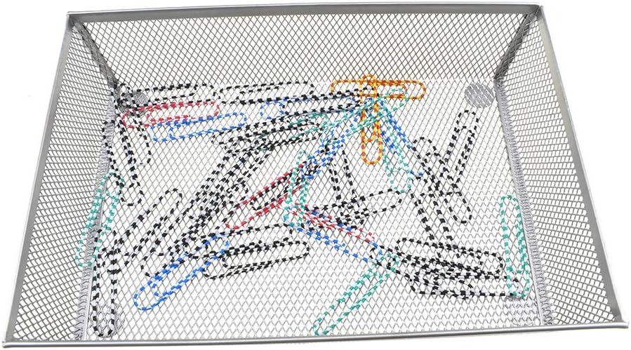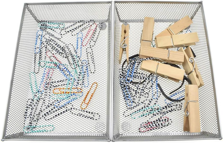 HAHIYO Stackable Mesh Tray Cup 9 x 6 x 2 inches Sturdy Container for Desk Drawer Organizer Collection for Home Office School kitchen Soft Foam Feet No Sharp Edges 1 Pack Silver