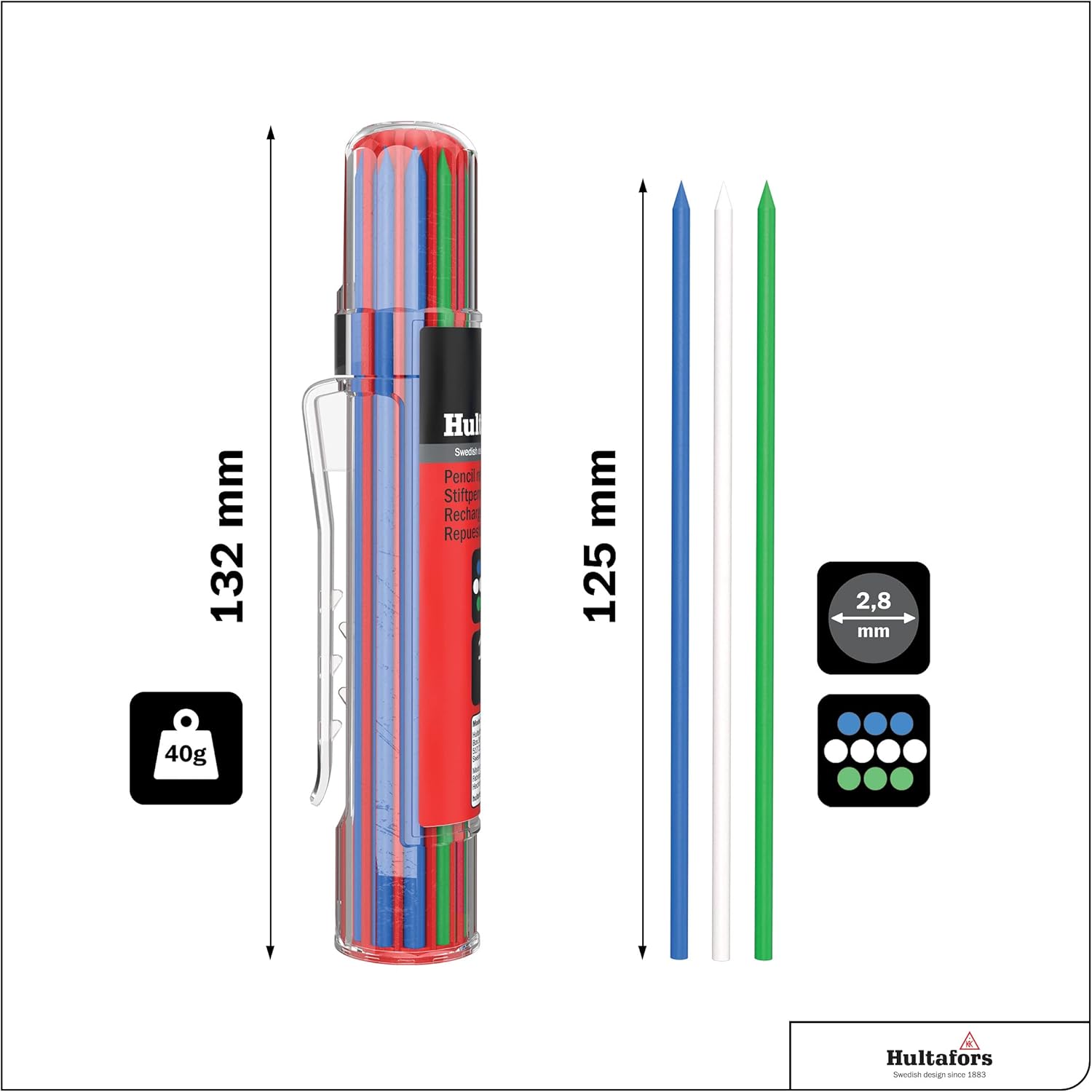 Hultafors Tools 650140U Dry Marker Refills HRD, Heavy Duty, Multi-Purpose, Blue, Green & White, 10 Leads