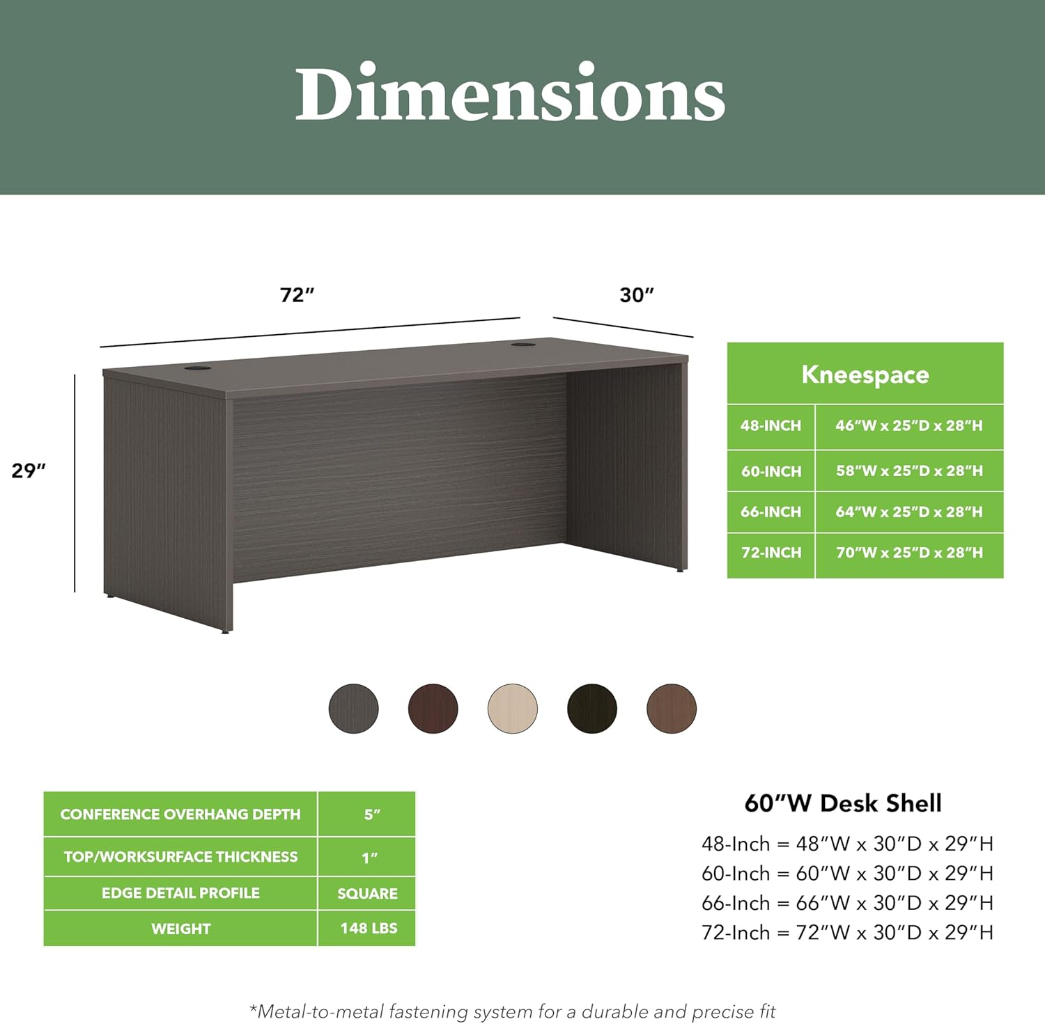 - MOD DESK SHELL: This executive office desk features a large 72" wide durable laminate finish computer desk top, ample kneespace and leg room, adjustable leveling glides and two grommets for easy and smart cable management to stay organized and tidy