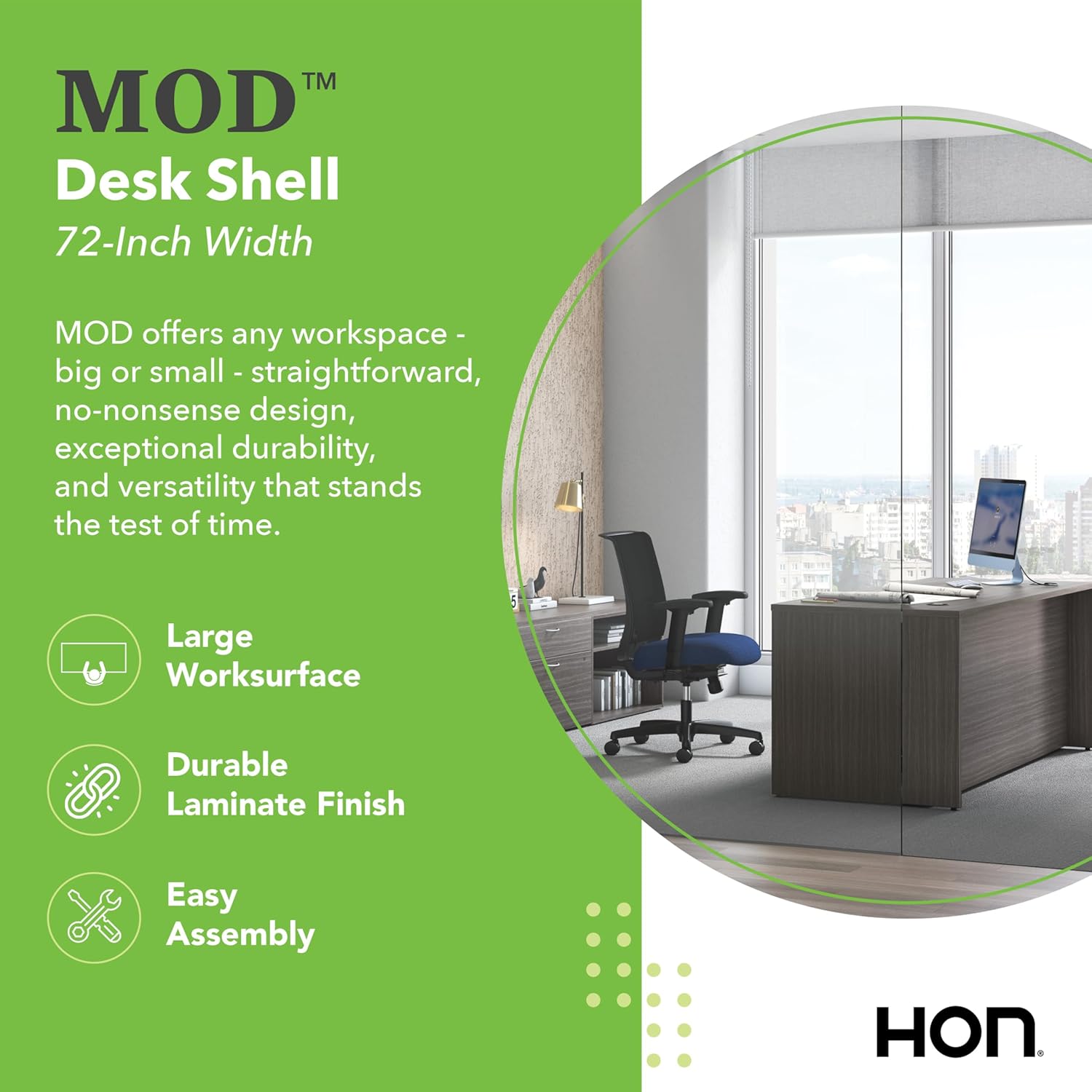 - MAKE YOUR SPACE WORK: For over 75 years, HON has been making spaces work with superior executive office desks. Backed by our HON Limited 5-Year Warranty, this desk shell will help you set the stage for better work, and a better work life