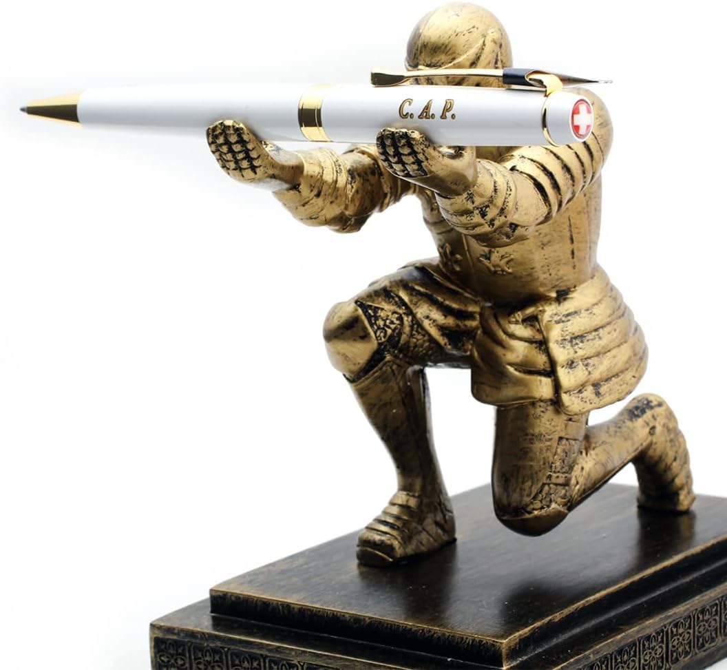 - Premium Quality Design: Features a deep, glossy white lacquer finish with golden trim and clip, crafted from solid brass with black ink.