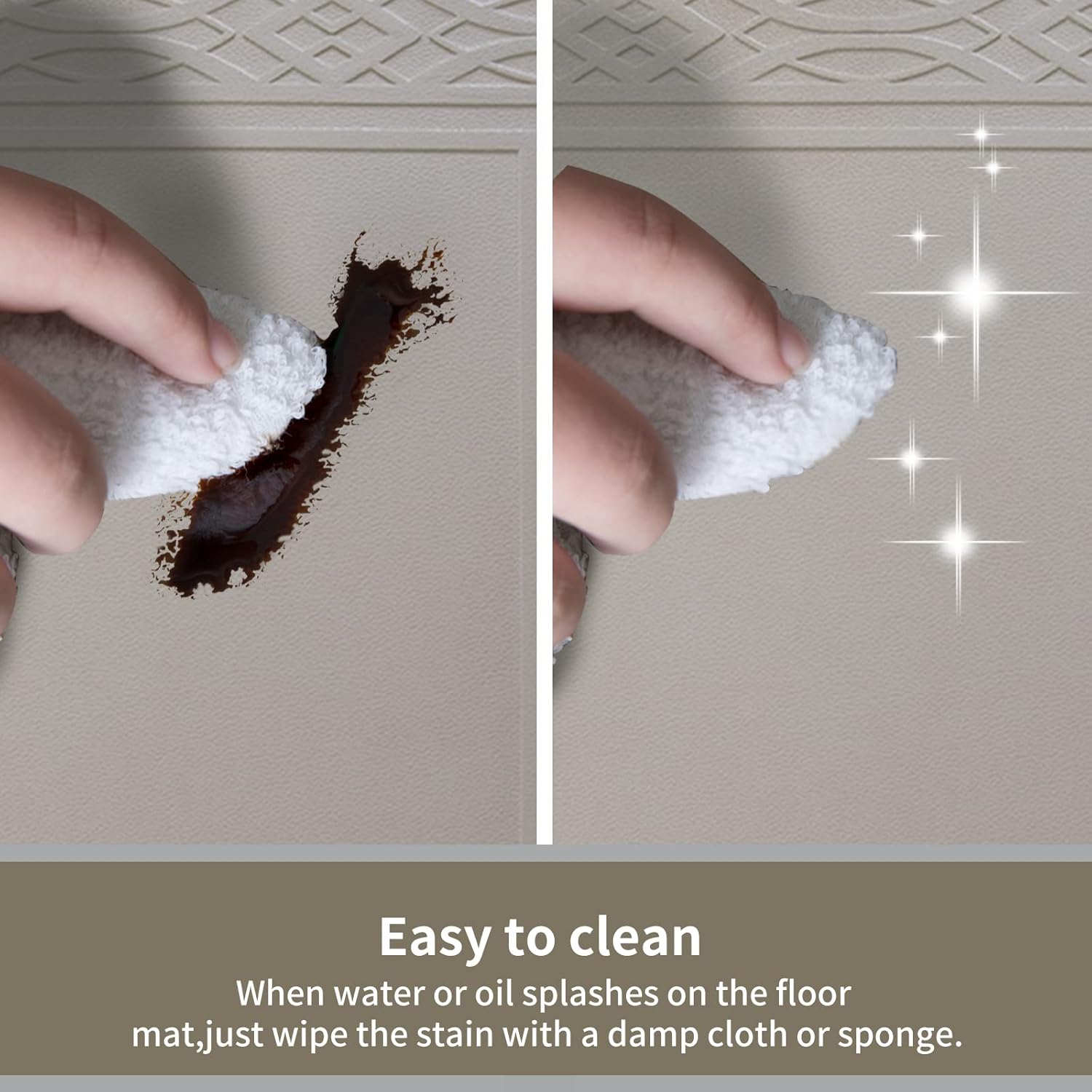 - EASY TO CLEAN stain resistant and waterproof material makes Broad i Home Anti Fatigue Mat easily wipe clean and will not collect dirt. Novel innovation of natural wood grain pattern designs on the top of our comfort mat makes you be immersive