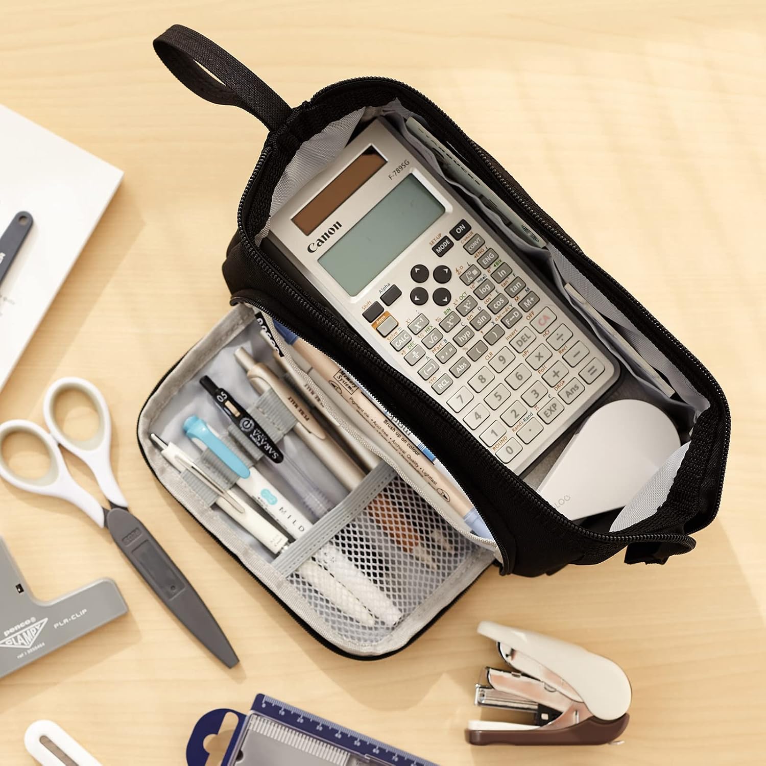 HVOMO Pencil Case Large Capacity Pencil Pouch Handheld Pen Bag Cosmetic Gift for Office School Teen Girl Boy Men Women Adult (Black)