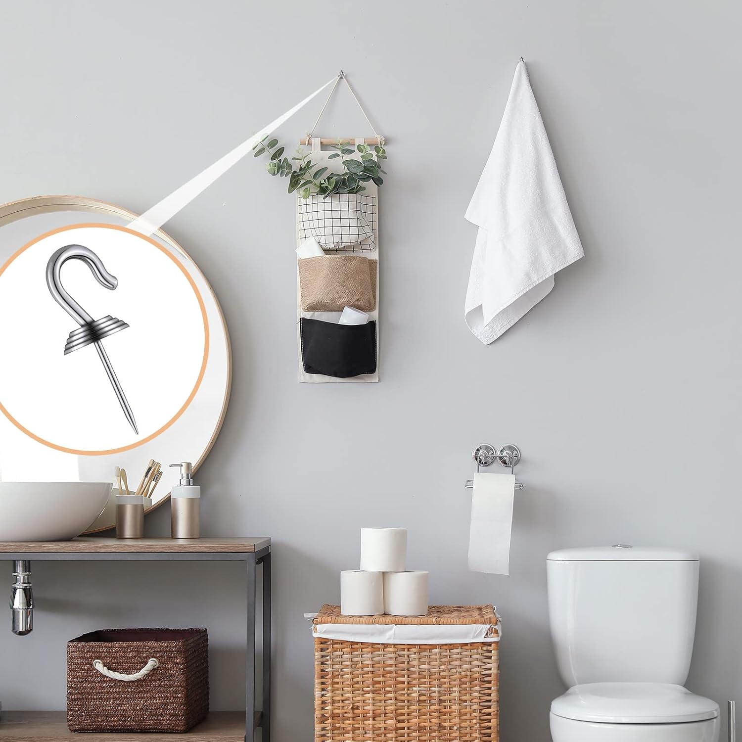 - Invisible effect: only a small pinhole will be left after the push pin wall hook is applied, which does not affect the appearance of household items; And it is also small when applied, almost invisible