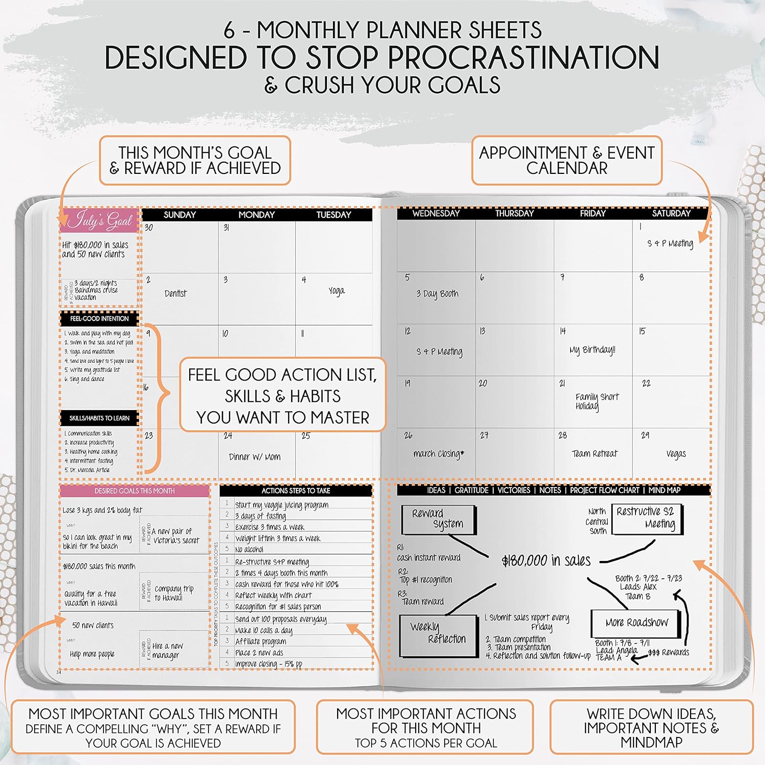 - GRATITUDE JOURNAL - This deluxe daily planner and self-care journal comes in A5 size (5.8 x 8.3 inches). The life planner comprises 264 pages of thick 100 gsm paper, including 90 daily planning sheets, guiding you on how to become the best possible version of yourself on a mental, physical, and interpersonal level. It's a unique diary based on leading scientific studies proven to increase productivity and happiness. The journal features an out-foldable vision board to help you stay focused, morning and evening power questions, mind maps, reflection pages, habit trackers, a back pocket, and much more than any other planner on the market!