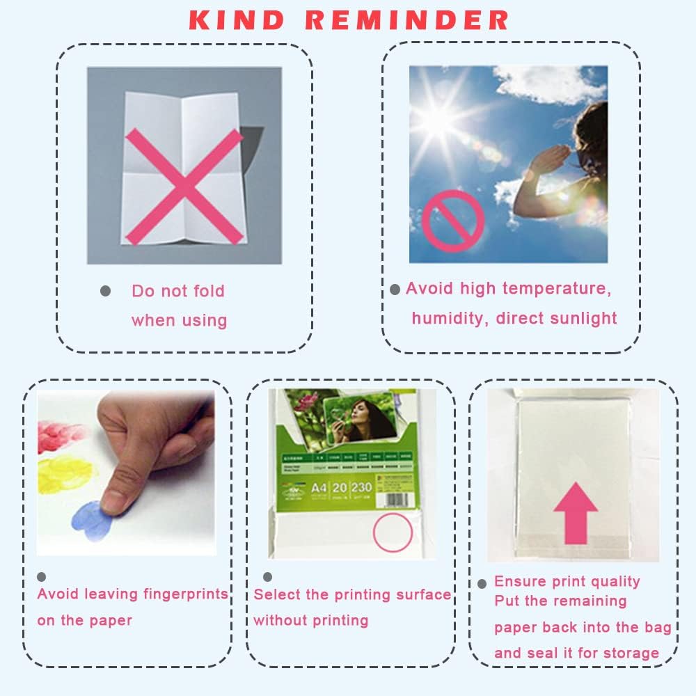 - 【Work with Inkjet Printer】 Premium glossy photo paper can only be used with dye-based ink printers. Single-sided printing, the back side can be written with a pen or ballpoint pen