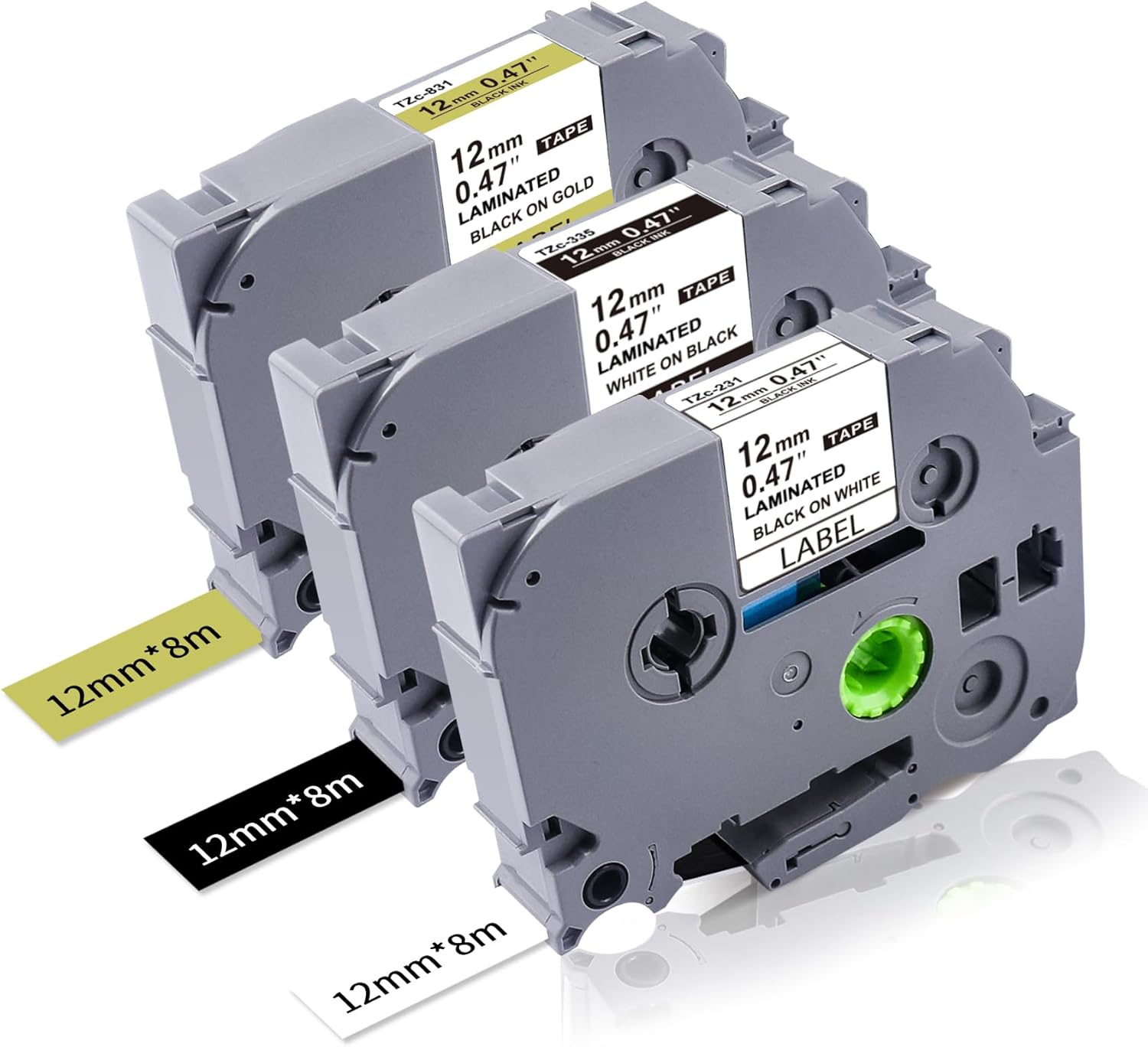 - Package: 3-pack Lonitul label maker tape 12mm 0.47 laminated compatible with Brother Ptouch label tape 12mm, 1/2 Inch x 26.2 Feet(12mm x 8m) of each Tz tape.