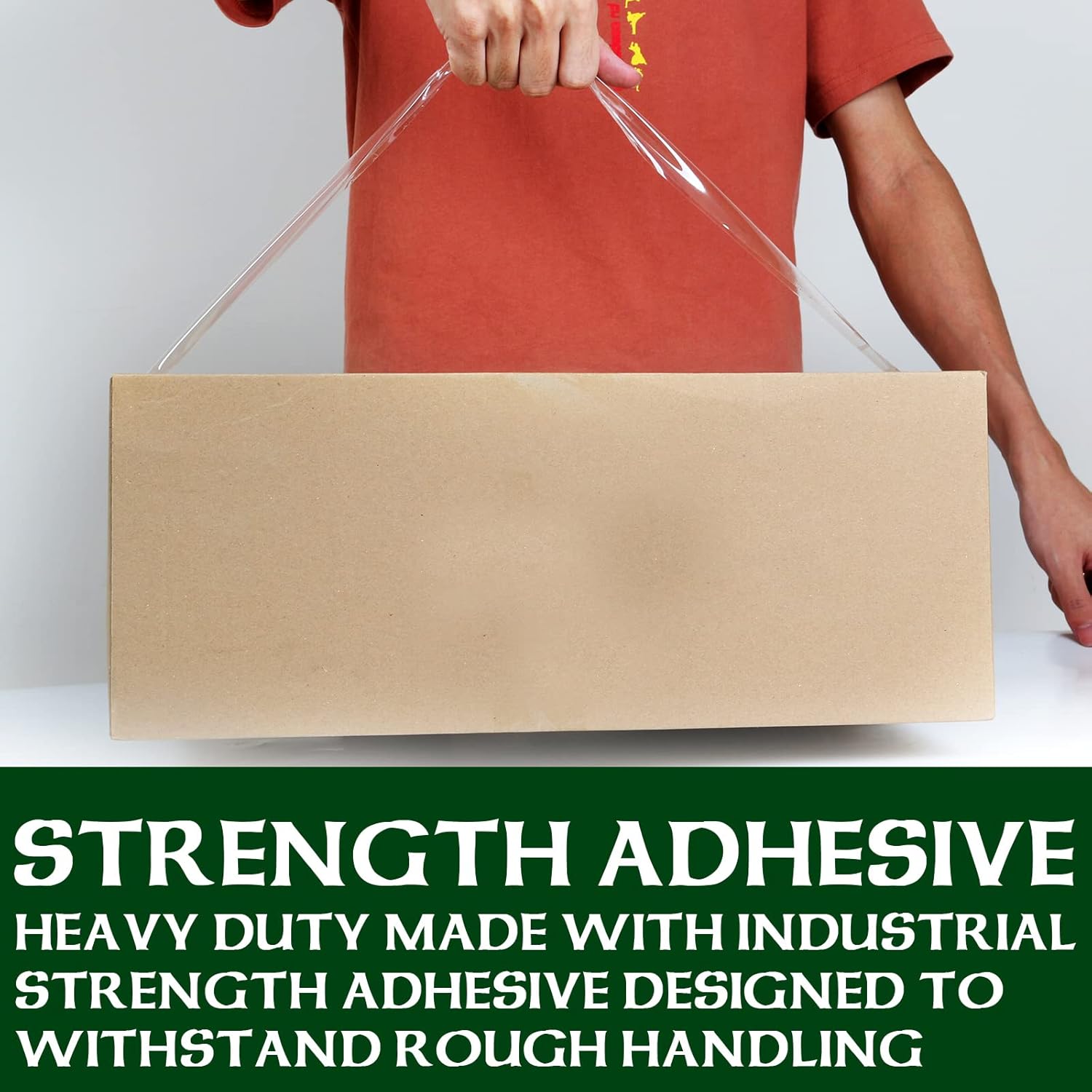 - PREMIUM QUALITY: Our thick tape is very good in thickness and toughness, will not tear or split easily. Great long lasting bonding range in performance for shipping and storage in hot/cold temperatures.