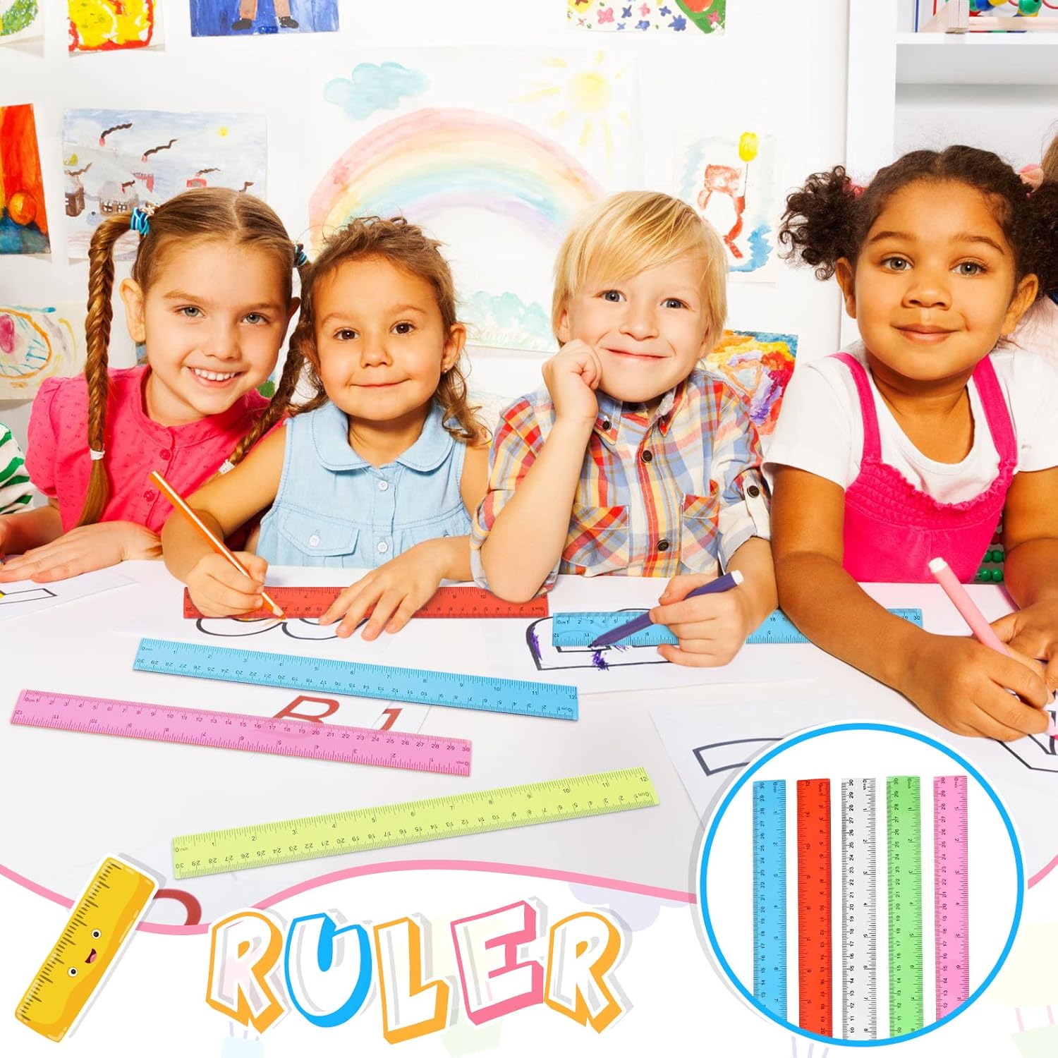 24 Pack Color Transparent Ruler Bulk 12 Inch Clear Plastic Rulers Kids Ruler with Centimeters and Inches Straight Measuring Drafting Tools for Classroom School Students Families Education