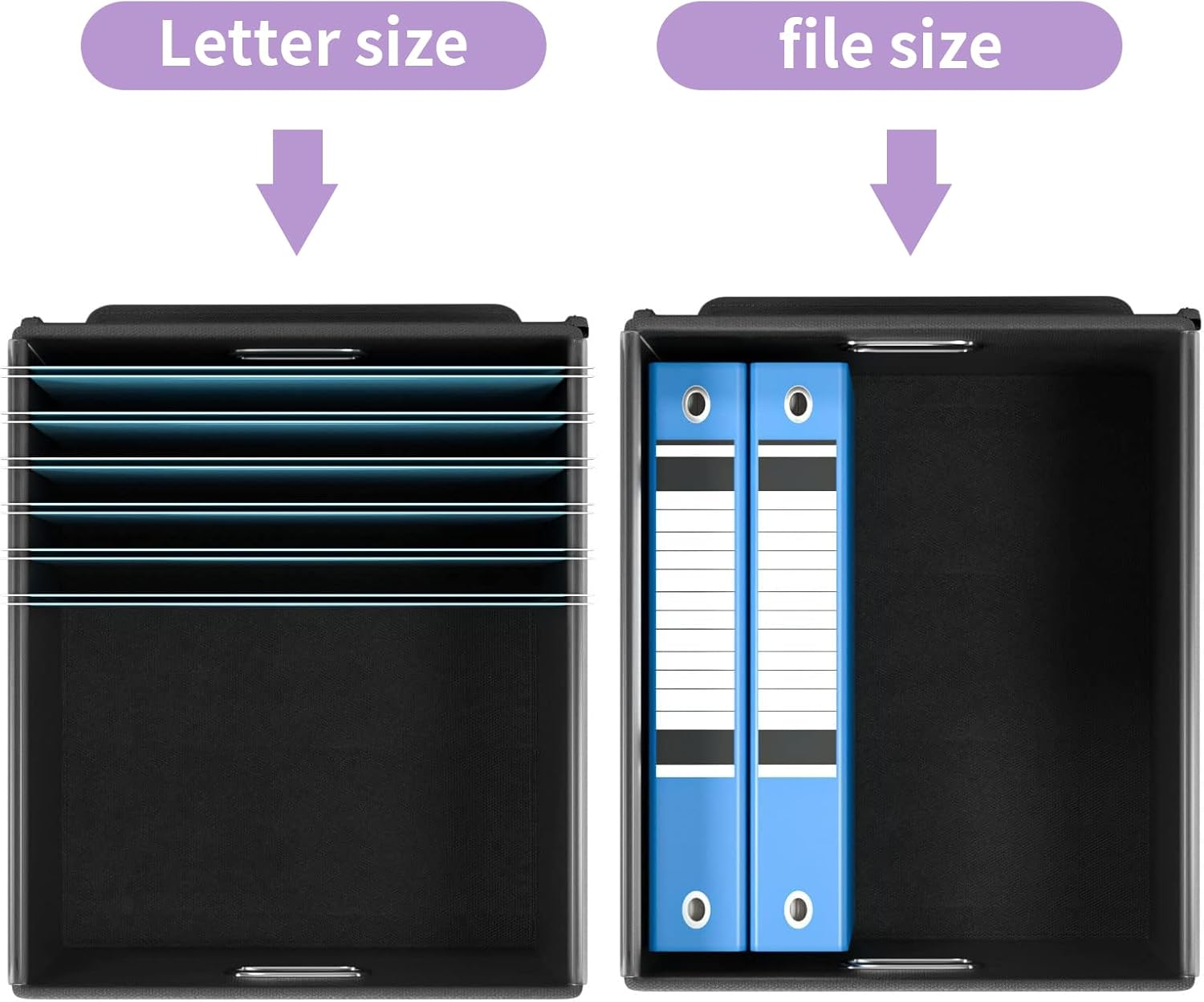 - Unique Functional Design - This file boxes both sides are equipped with practical PVP slide rails, which can not only prevent the two sides of the file storage box from loosening, but also facilitate the sliding of the file folder, which is very suitable for hanging file folders. The metal handles on both sides allow us to easily move the storage box, and the label slot on one side facilitates classification. Functional features and a beautiful design create the best filing organizer.
