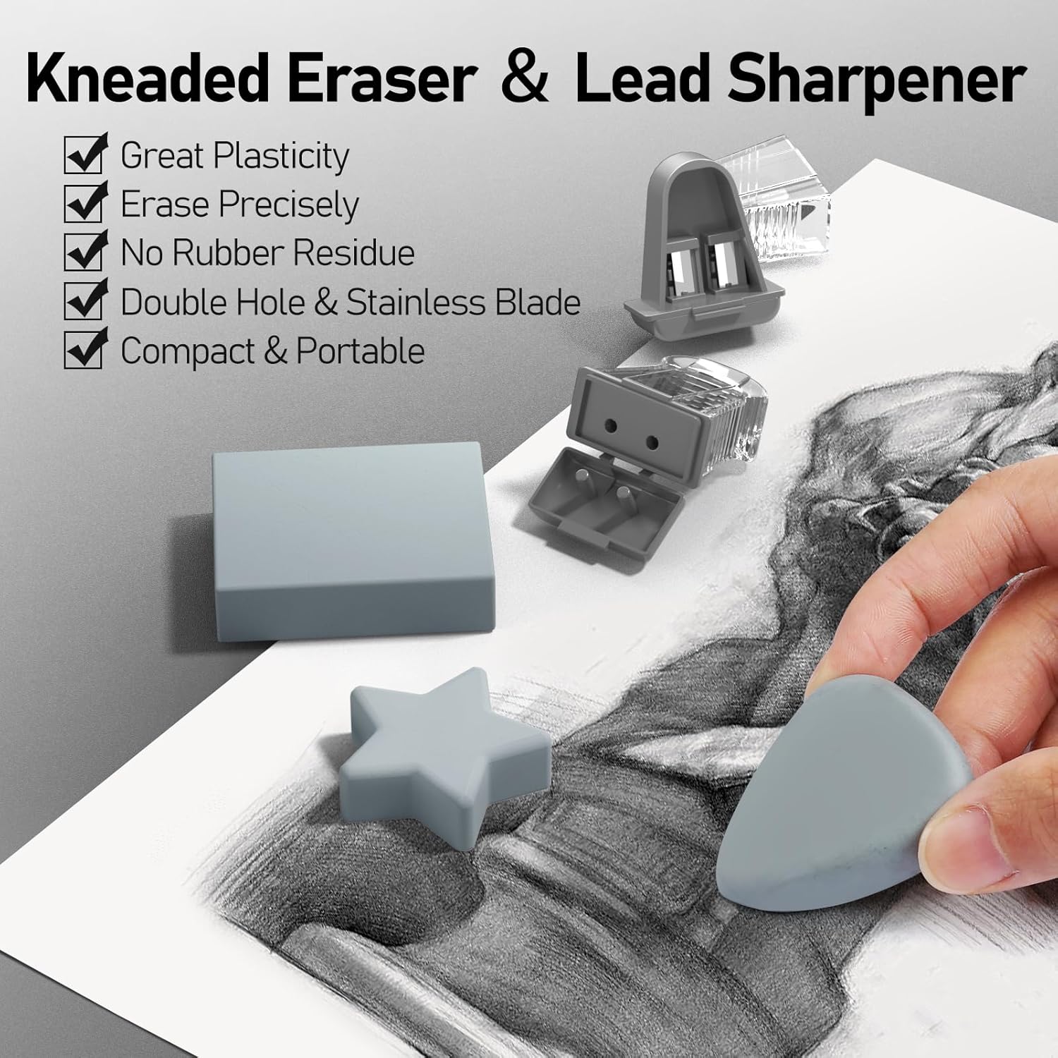 - [Professional Set] You will get 1PC 2.0mm drafting mechanical pencil, 1 tube each of 2H, HB, 2B, 4B, Color lead (60 pcs in total), 1pc kneaded eraser ,1pc 4B eraser, a mini double-hole pencil sharpener, a storage case