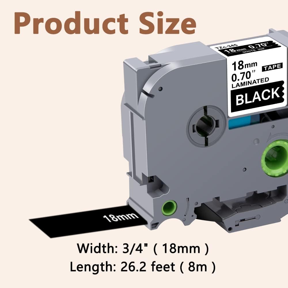 - 18mm label maker tape TZe-345 is compatible for Brother label maker PT D400 D400AD D450 D600 D800W E300 E500 E550W E800W H300 P700 P750W P900W P950W 300 300B 310 310B 320 330 340 350 520 530 540 550 580C 1300 1400 1500PC 1600 1650 1700 1750 1760 1800 1810 1830 1880 1890W 1900 1910 1950 1960 2030 2100 2110 2200 2210 2300 2310 2400 2410 2430PC 2500PC 2600 2610 2700 2710 2730 2730VP 3600 7500 7600 9200DX 9200PC 9400 9500PC 9600 9700PC 9800PC and more