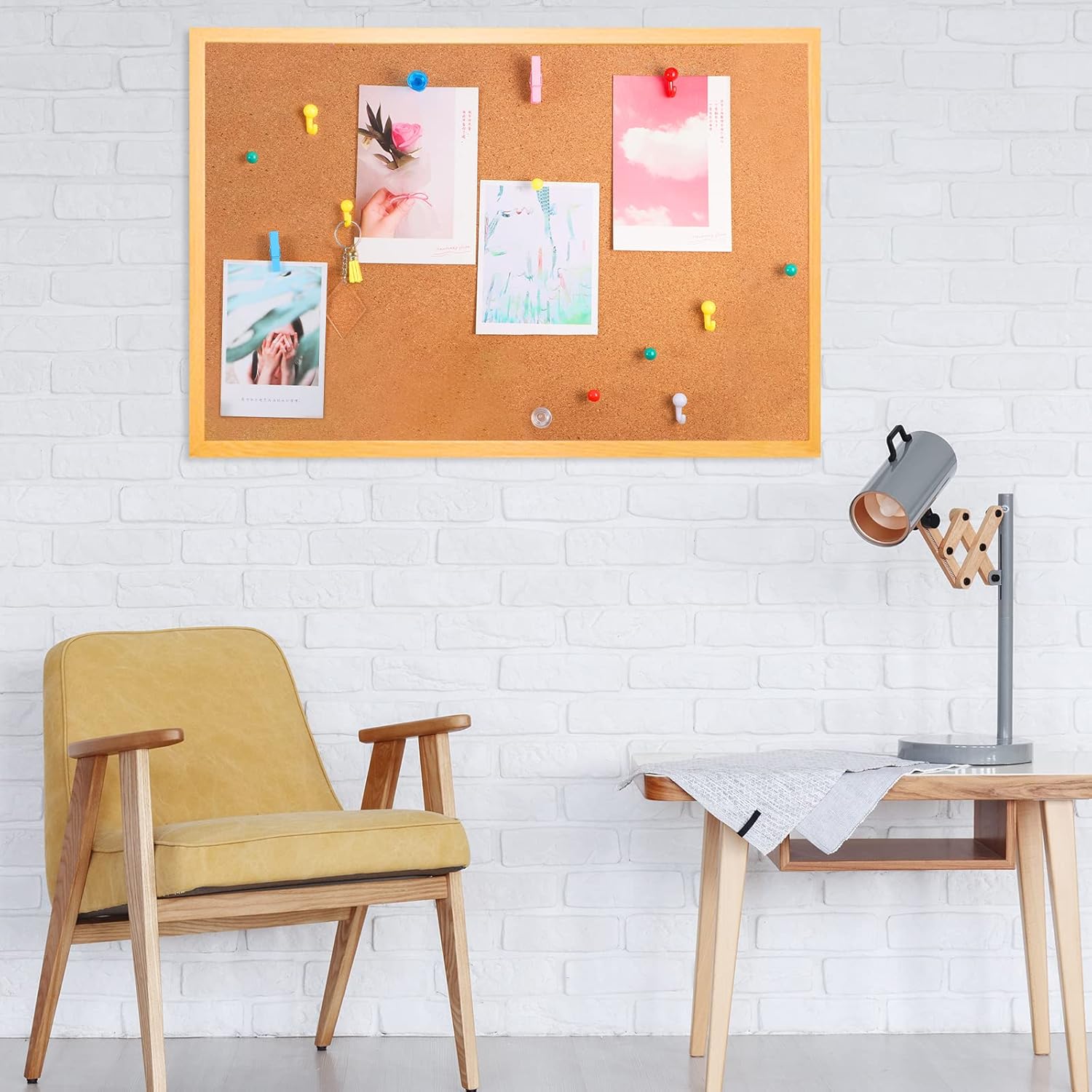 - 【Easy to Use】Our push pins can easily nail it to the board or take it off without hurting your hands and without leaving obvious holes in the surface. Our wooden clips pins can hold the paper together well, and the push pin hooks can also easily hang 20lb products, easy to use.
