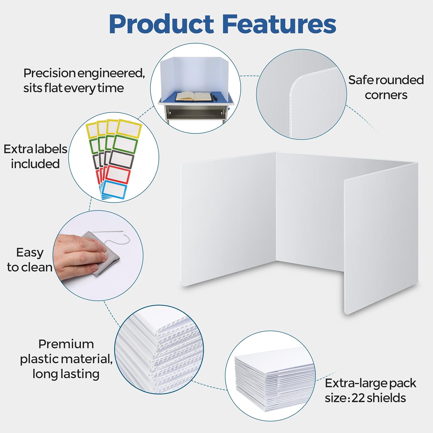 22 Pack Classroom Privacy Shields for Student Desks - Easy to Clean Plastic Sneeze Guard Folder Desk Divider Study Carrel - Classroom Materials for School Teachers - Includes Extra Labels