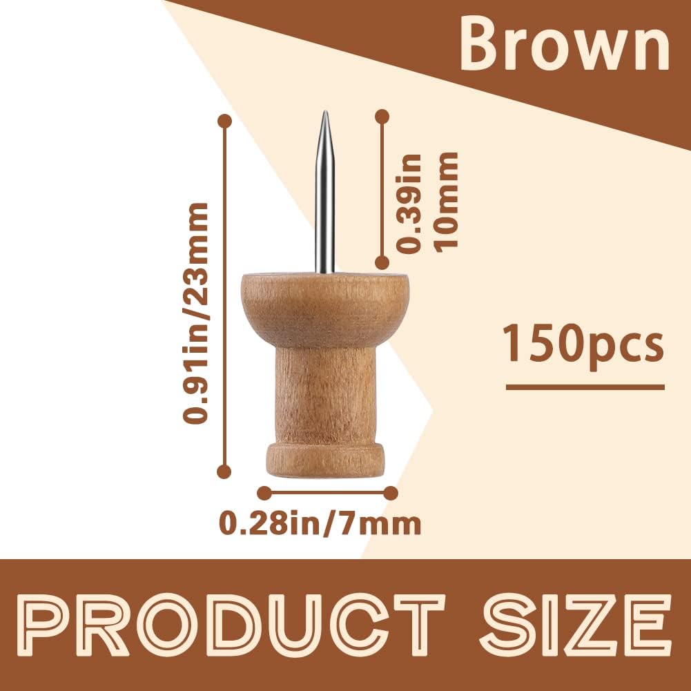 150 Pcs Push Pins for Cork Board, Decorative Thumb Tacks Wooden Push Pins Head Pin Wood Map Tacks Marking Pin, Wood Thumb Tacks Decorative for Bulletin Boards Craft Projects with Storage Box, Coffee