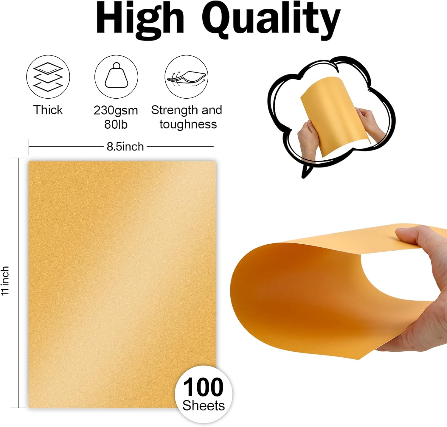 - Paper Dimension: Each package includes 100 sheets of gold cardstock paper, measures 8.5 x 11 inches in size, 230 grams in weight