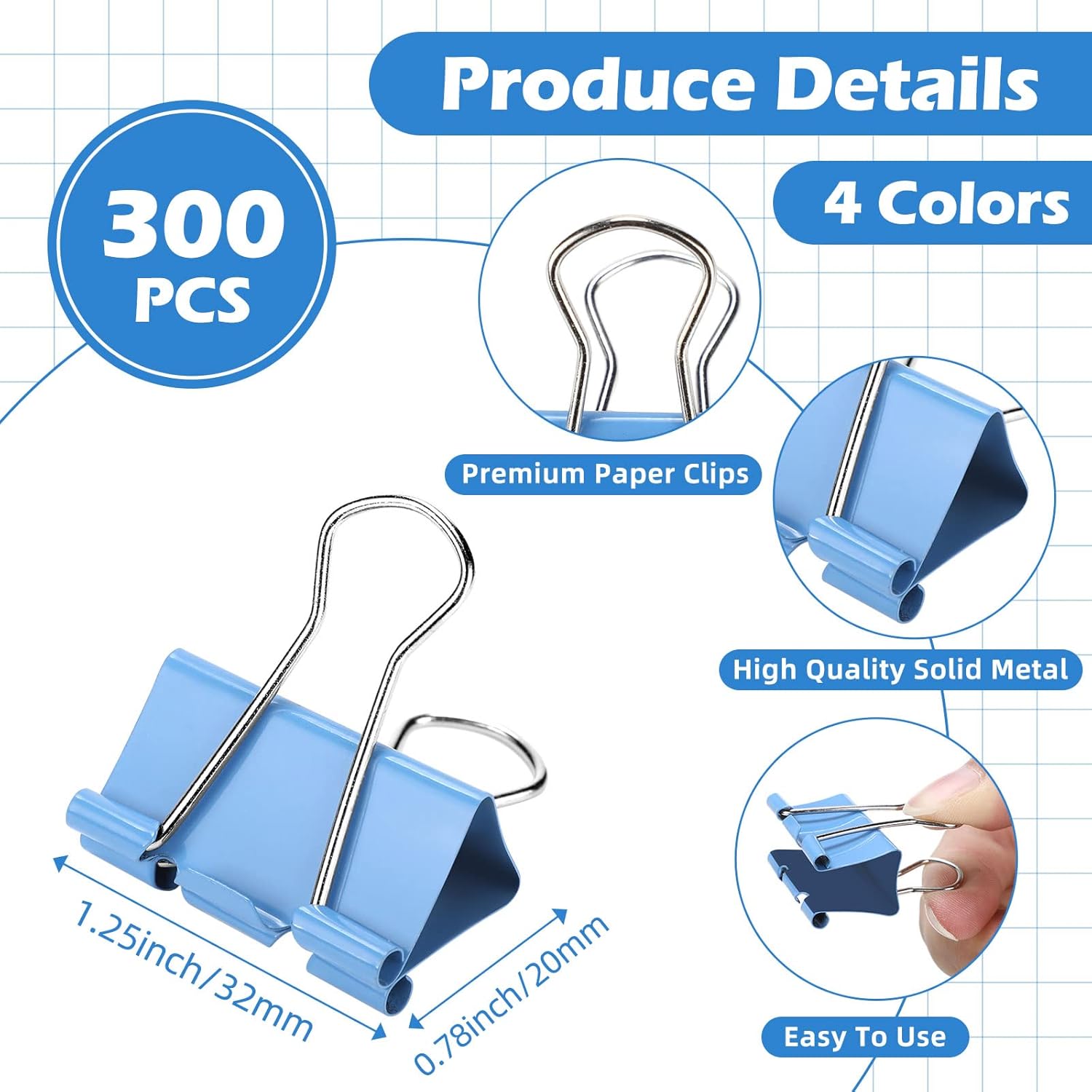 300 Pcs Medium Binder Clips Paper Clips Office Supplies Paper Clamps for Teachers Students School Office Business Paperwork Supplies (Assorted Colors, 1.25 Inch)