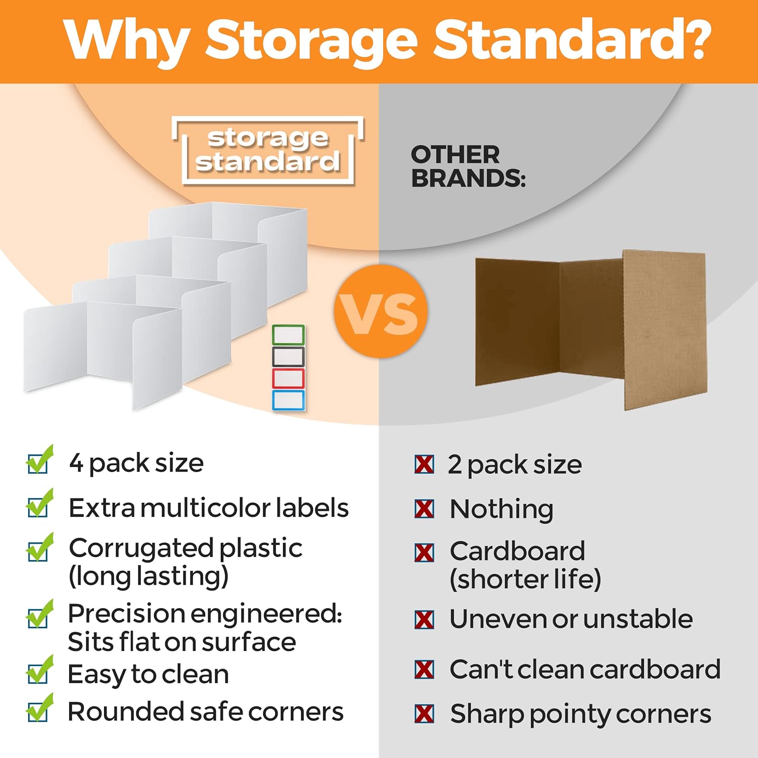 - These reusable long lasting partition supplies are made from sturdy high quality plastic. These partitions will outlive cardboard products by many years.