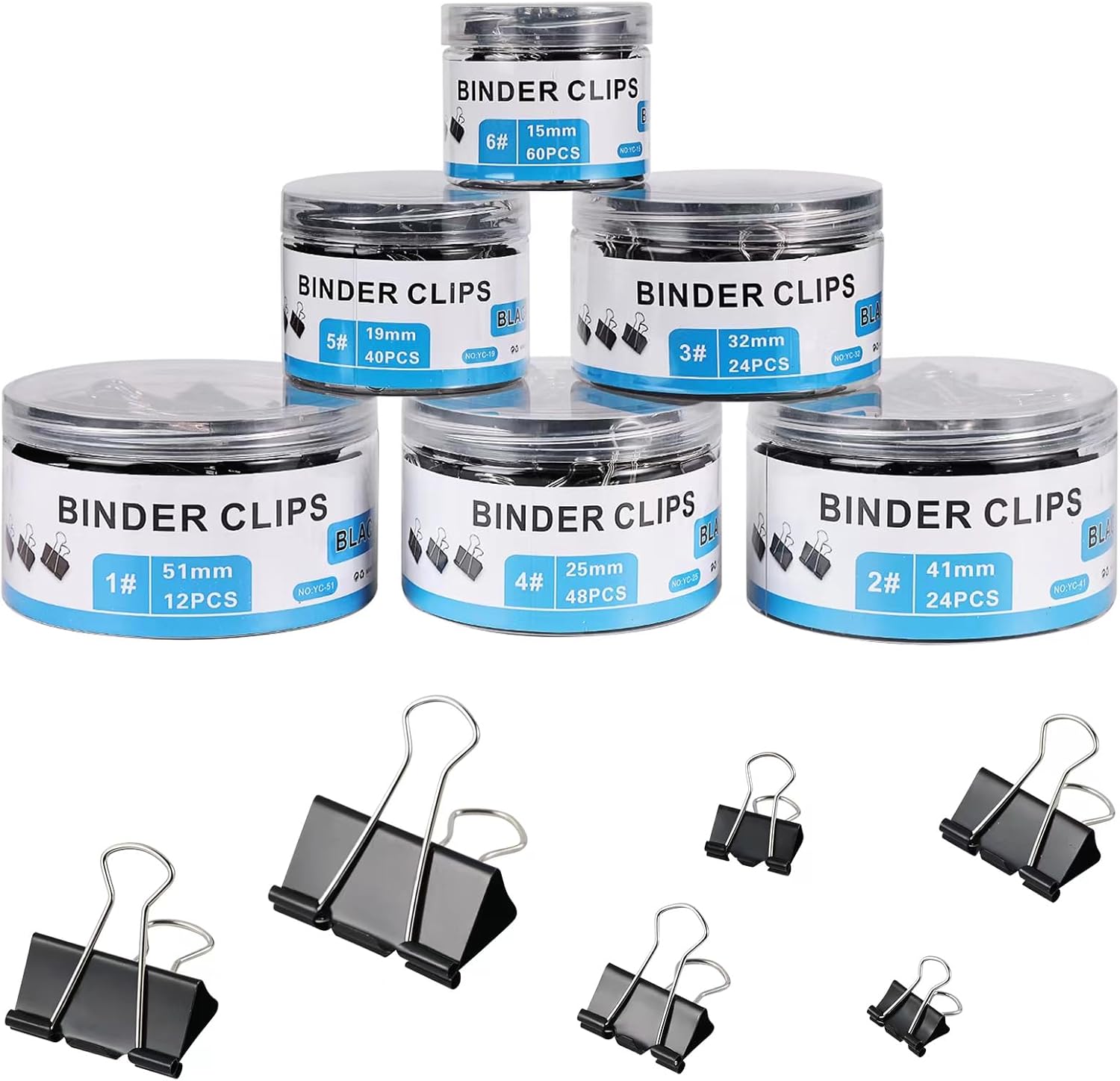 - WHY SHOULD BUY: Classic design, super cost-effective paper Binder Clips set, elegant black, includes different 6 sizes: Extra Large, Large, Medium, Small, X Small, is your indispensable partner for study and work!