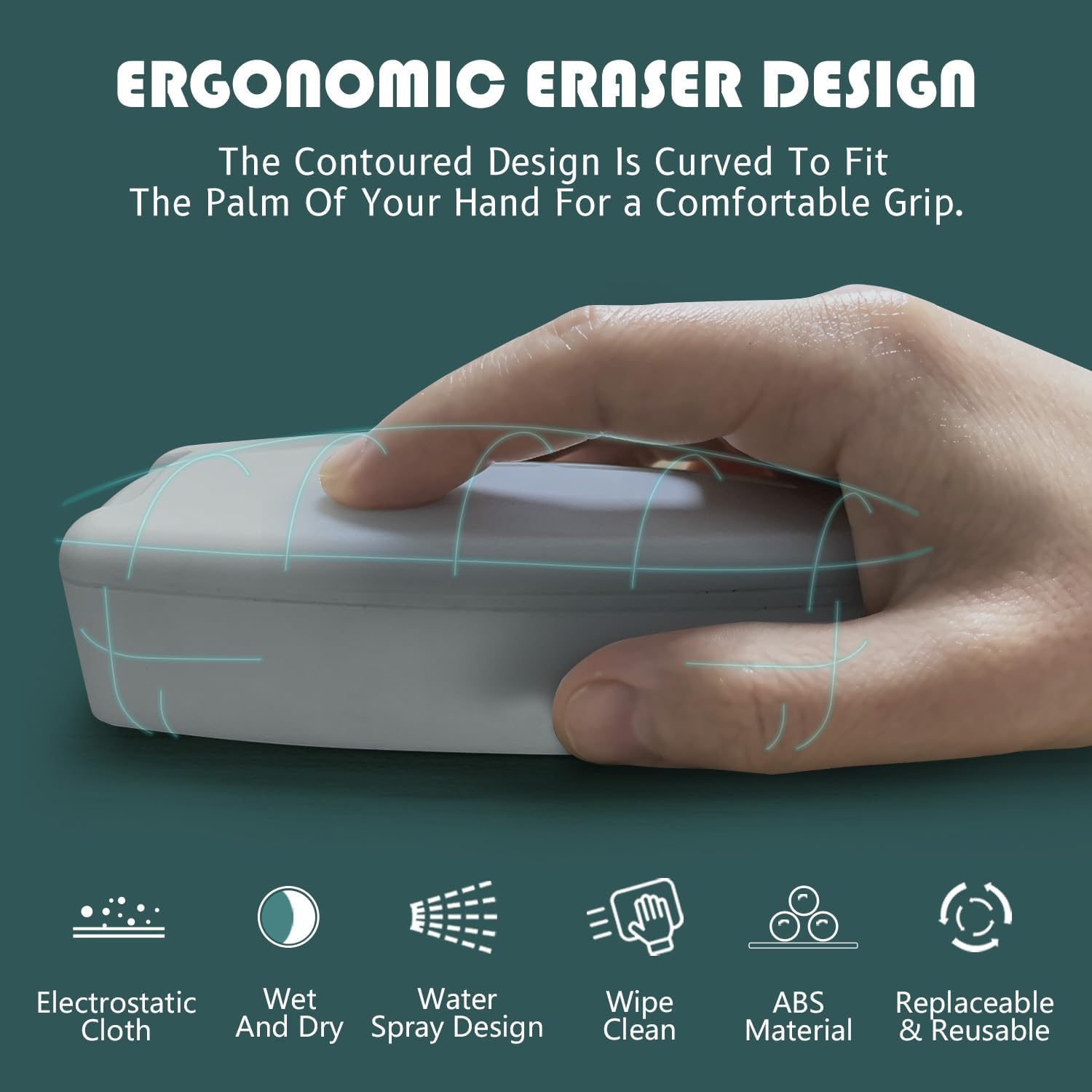 - 【ERGONOMIC ERASER DESIGN】- The eraser contoured design is curved to fit the palm of your hand for a comfortable grip.