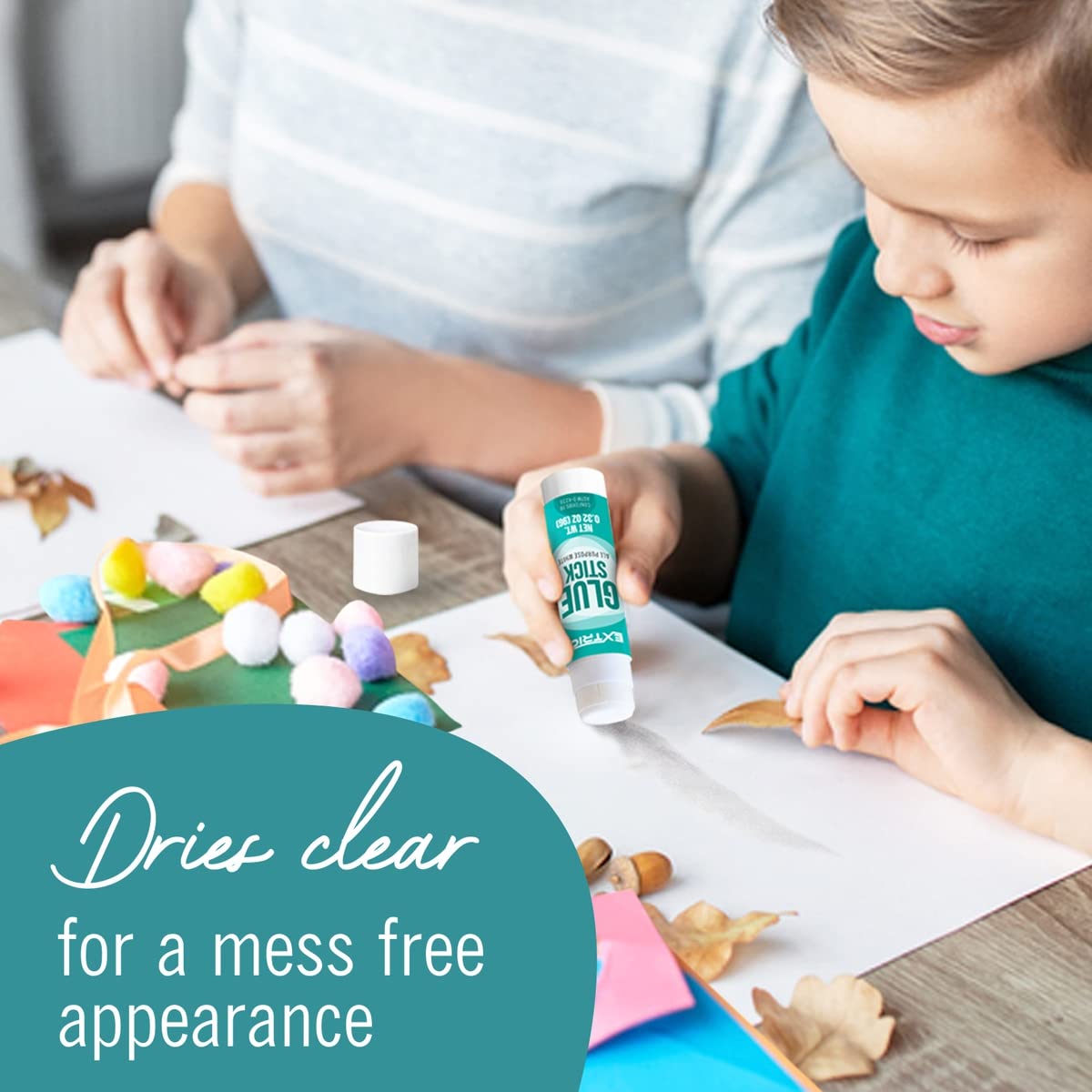 - Glue sticks for kids – white glue sticks dries clear and applies smoothly for a mess-free appearance.