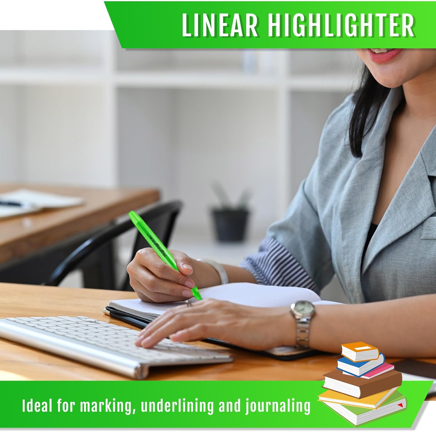 - Package Includes: you will receive 60 green cute highlighters, enough number of highlighters to meet your daily use and replacement needs, very bright green can better help you mark key sentences, highlighting, so you can quickly find the key sentences and key vocabulary when reading