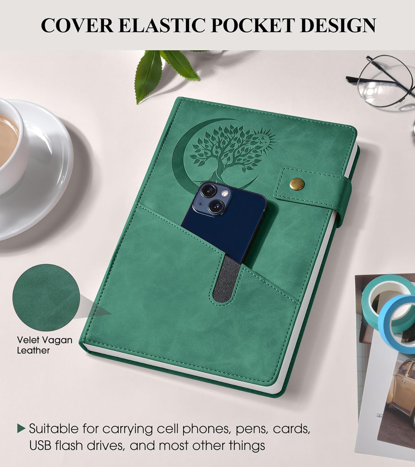 - 【CONVENIENT FEATURES FOR ORGANIZATION】:The leather journal includes 3 ribbon bookmarks, allowing you to easily mark important pages or sections. The 180° lay-flat design ensures that the notebook lies flat on any surface, making it comfortable to write in for extended periods. The metal snap closure design keeps the notebook securely closed, protecting your notes from damage.These features make the notebook a versatile tool for various settings, from work and school to personal use.