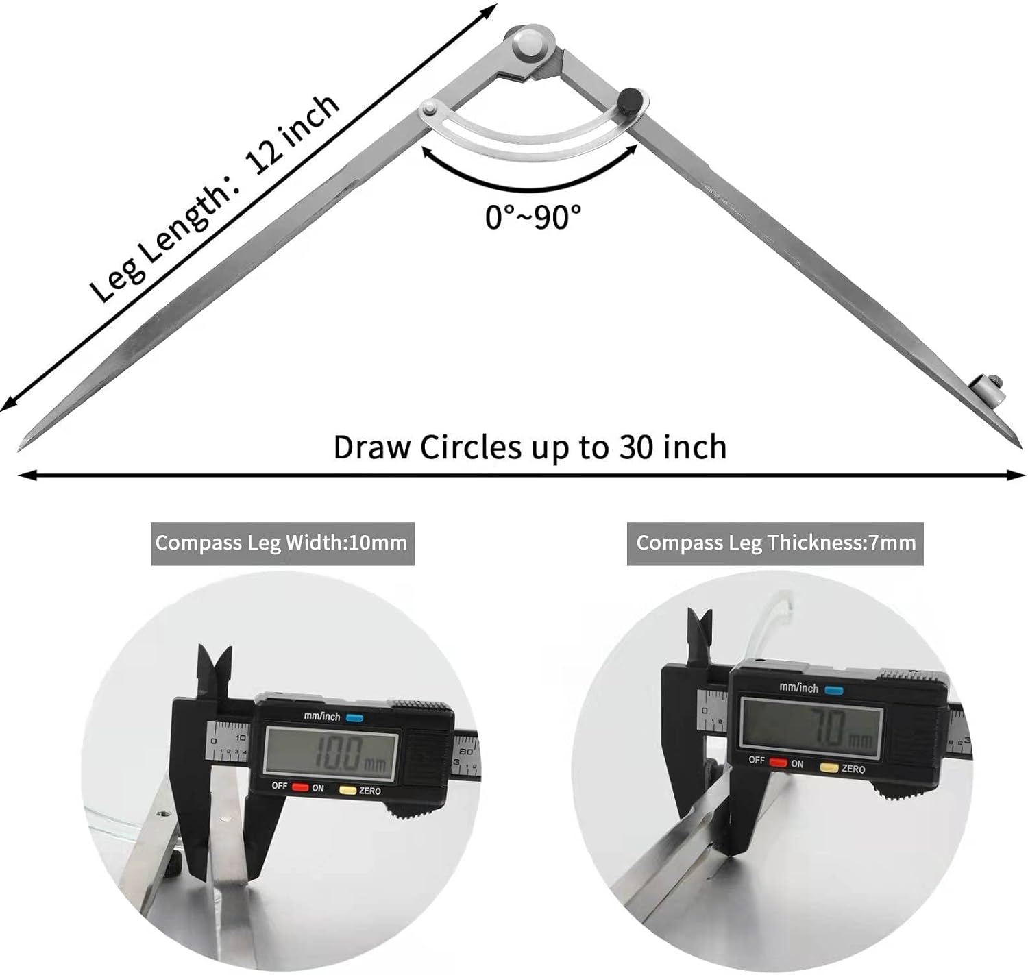 - 【Large size】:Professional All Metal Compass / 16", 20", 24" large size Divider For Woodwork, woodworking, metalworking, leatherworking, math, etc.