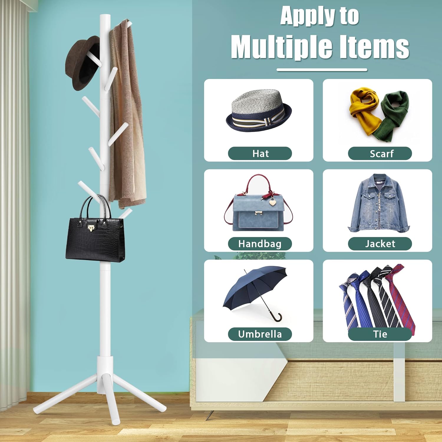 - ECONOMICAL and PRACTICAL: It is so practical with cheap price. Its eight sturdy hooks allow you to hang hats, scarves, backpacks, ties, and umbrellas or any other things you want
