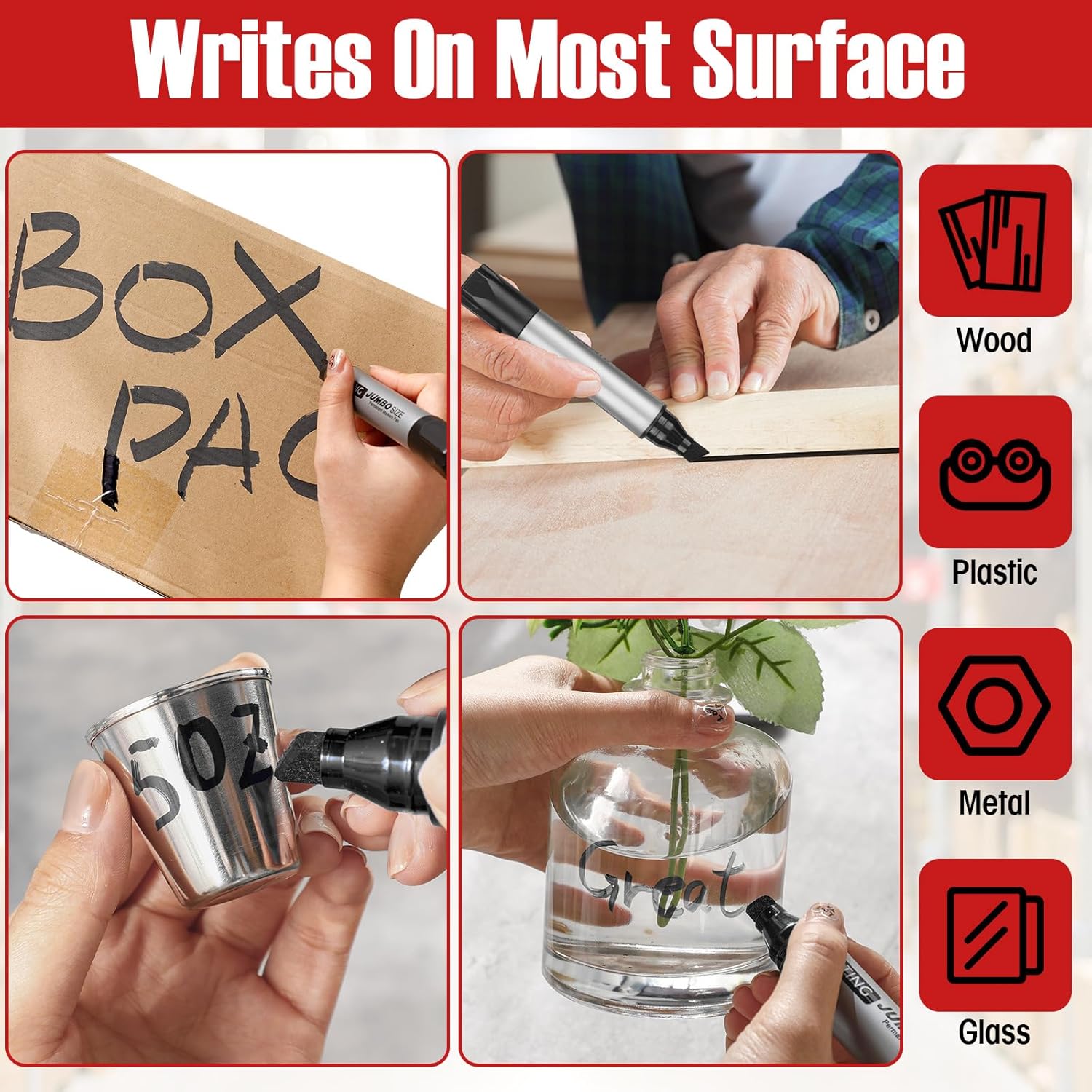 - Quick Drying and Waterproof: these jumbo markers are designed to dry fast, so you don't have to worry about smudging or running ink, they are also waterproof, convenient to use on the surface outside