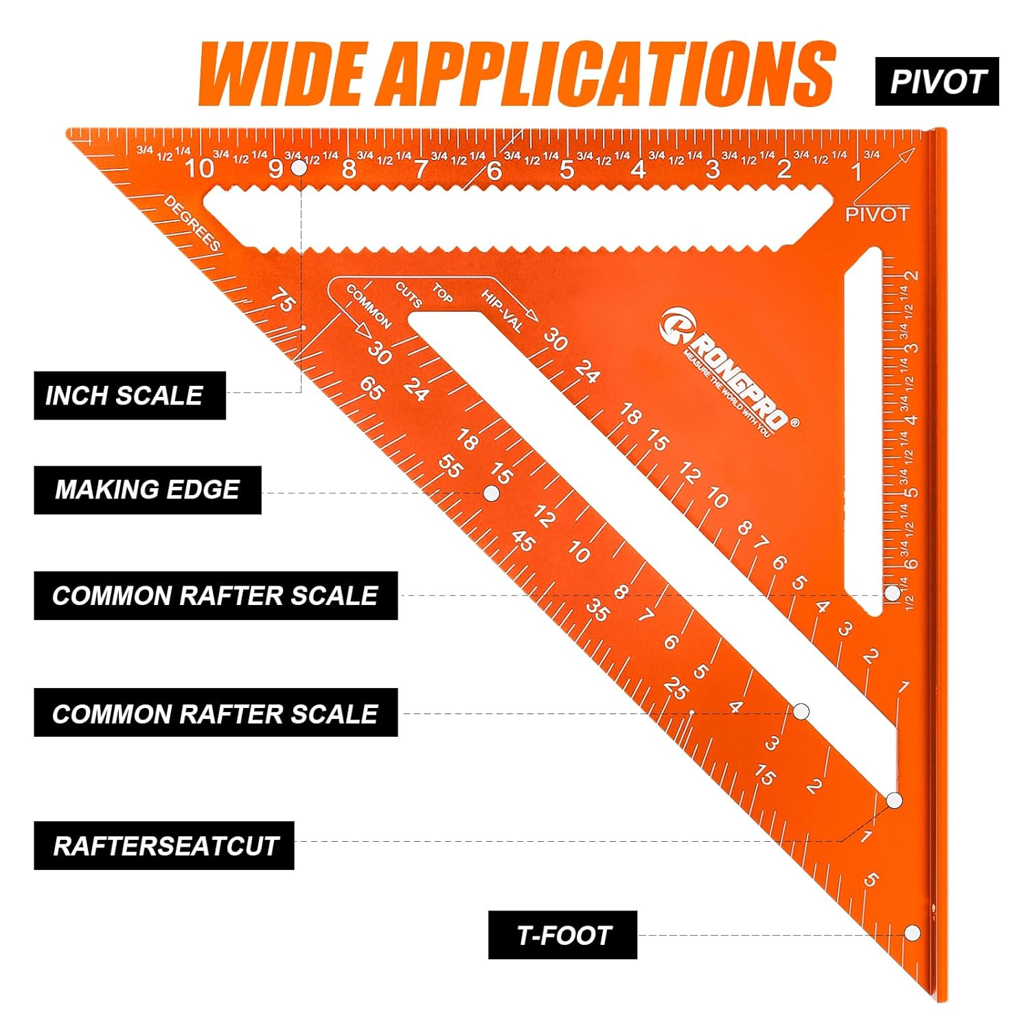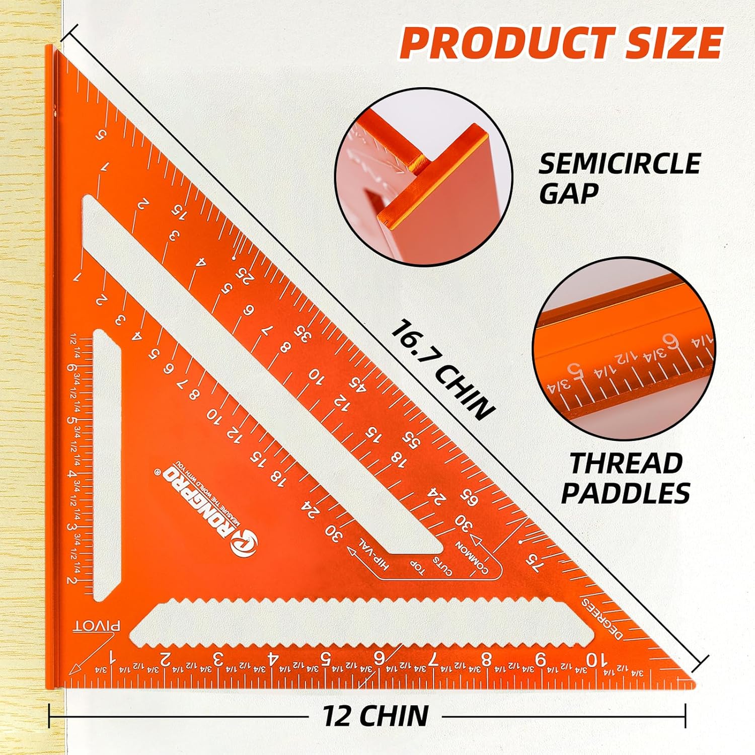 - 【High Quality】RONGPRO rafter square made of precise and durable CNC-machined aluminum alloy, which is light and convenient. Good oxidation resistance, not easy to break, each triangle ruler is thickened, corrosion-resistant and high hardness.
